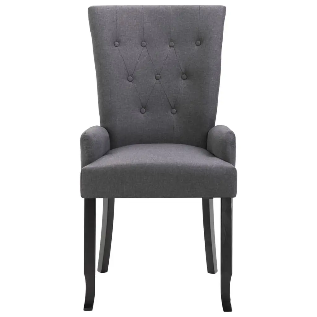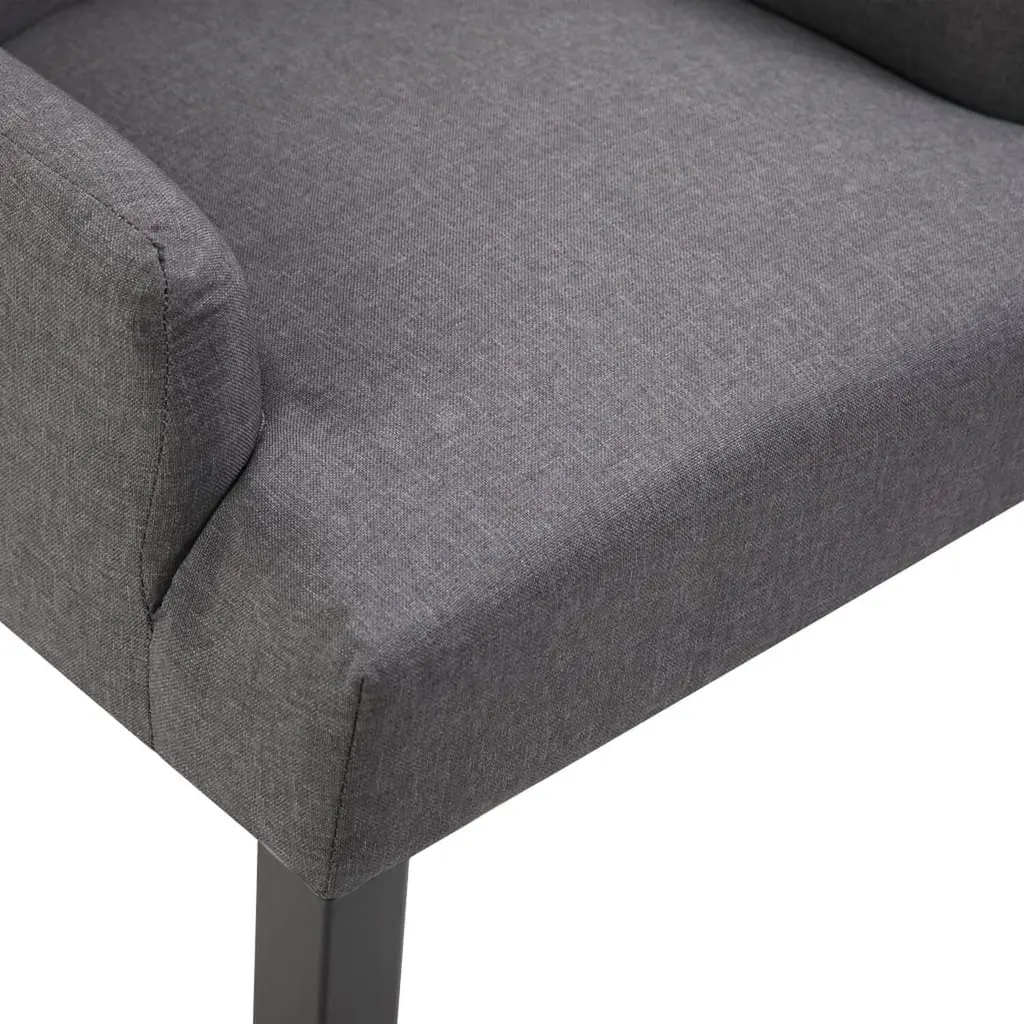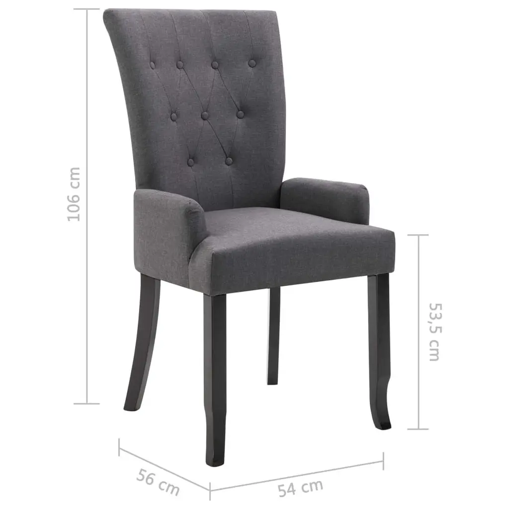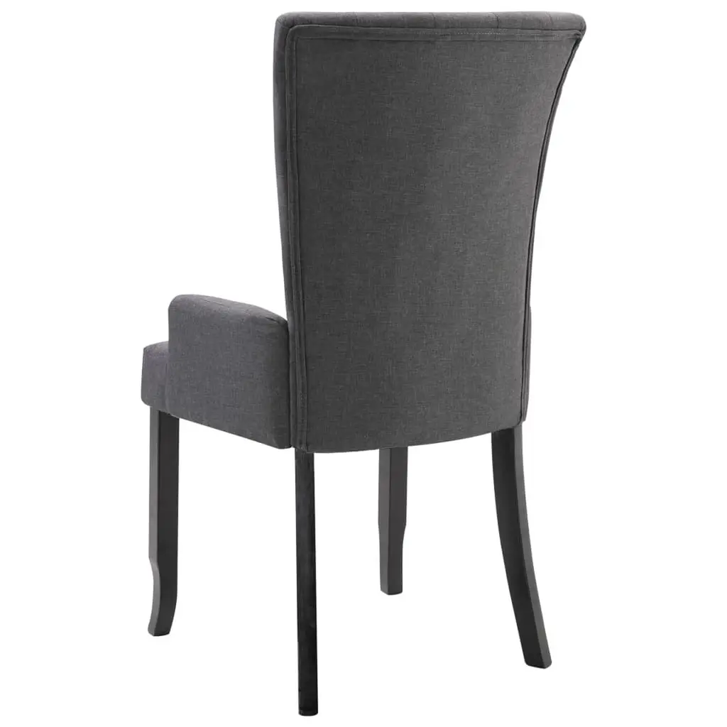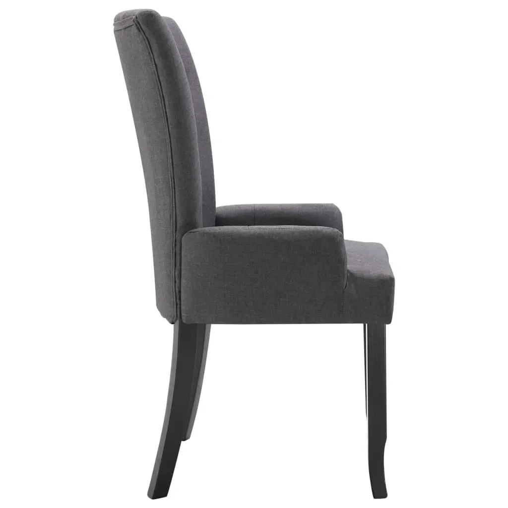 This dining chair set flawlessly merges function and style, with six gorgeous chairs that fit right into any dining room or kitchen. Made with chic dark grey polyester and a solid oak wood frame, they not only boost the look of your space but also create a warm, inviting vibe for family gatherings or dinner parties. Ergonomic Comfort: The ergonomic design of these chairs offers optimal comfort during extended mealtimes, fitting diverse body types easily. Your guests will appreciate the support and style these chairs bring to your dining experience.Elegant Aesthetics: With versatile dark grey fabric and an oiled oak finish, these chairs blend well with various interior designs, whether modern or rustic. Their looks make for a lovely addition to any dining area.Padded Armrests: The soft armrests add an extra touch of luxury, encouraging everyone to relax. Great for those long dinners and family chats.Easy Maintenance: The stain-resistant fabric keeps spills manageable and the smooth surface makes cleaning a breeze—functional and beautiful!Durable Construction: Built for daily use, the solid oak frame guarantees longevity, while the tufted seat cushion offers added comfort. Enjoy years of dining pleasure with this robust chair set.
