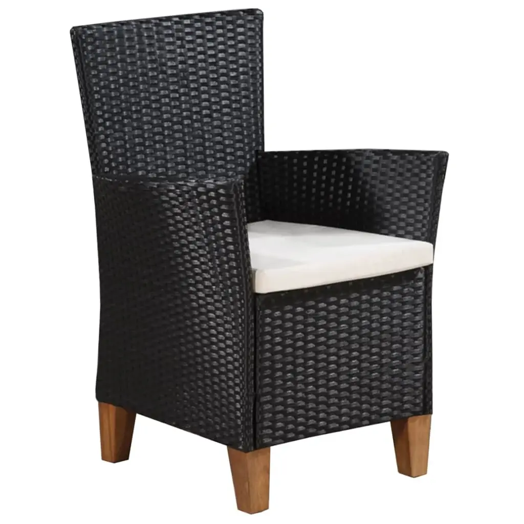 Vidaxl Dining Set Black And Brown Pe Rattan, Acacia Wood, Steel Medium