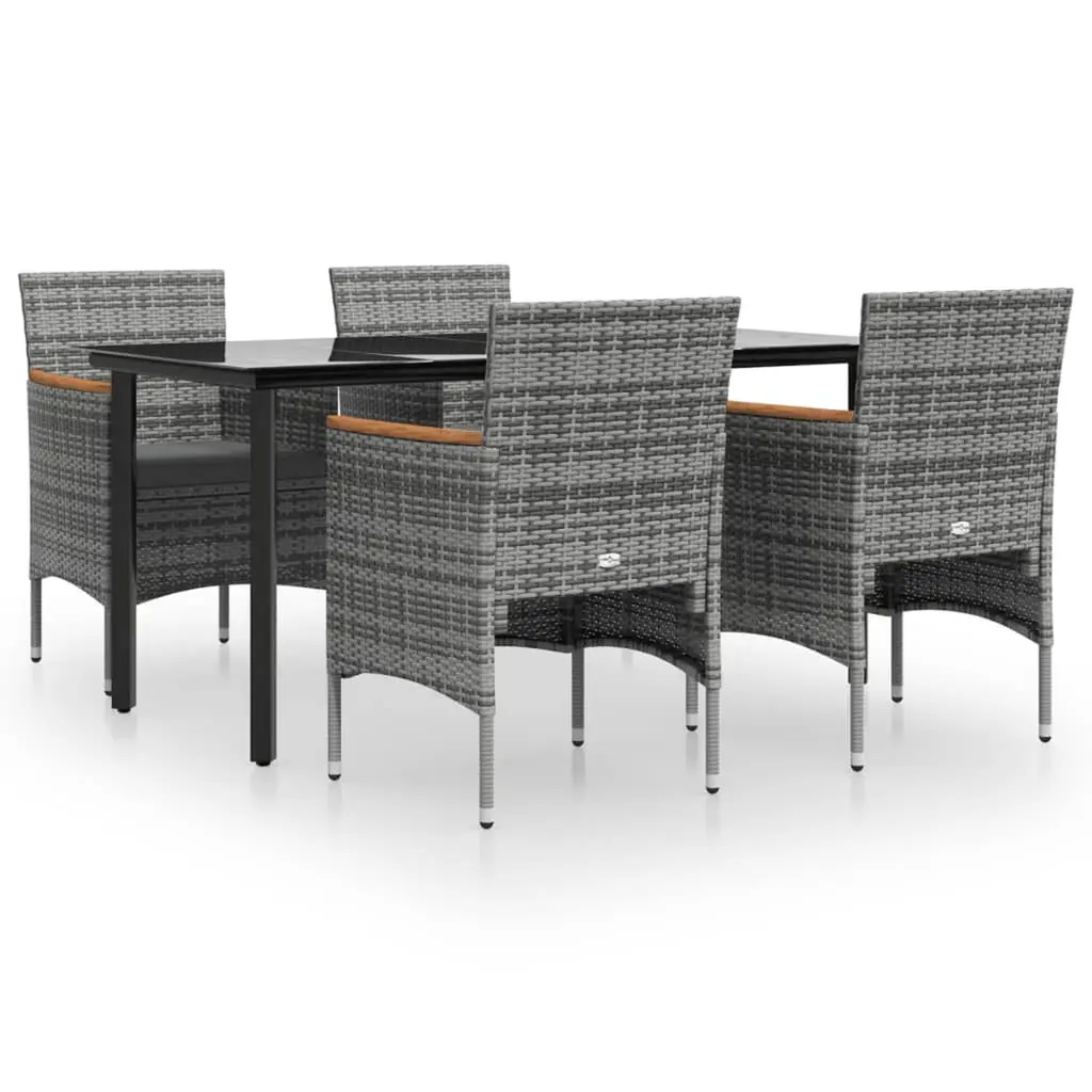 This 5-piece dining set is all about functionality and style, perfect for anyone looking to up their outdoor dining game. The striking black and brown color combo, along with smooth textures, creates a warm vibe, whether you’re hosting a summer barbecue or enjoying a quiet dinner under the stars. Adjustable Armrests: Enjoy personalized comfort with armrests that can be manually adjusted to your preferred height. This feature gives extra support, letting you sit back and relax during meals.Durable Material: Made from high-quality, weather-resistant PE rattan, this dining set ensures it lasts while looking good. Its fade-resistant finish keeps it vibrant over time.Lightweight Design: The set’s lightweight design lets you easily rearrange it, making it simple to adapt to gatherings of any size. You can move it around to fit your outdoor space or your preferences.Versatile for Every Occasion: Great for both casual breakfasts and fancy dinners, the set’s modern design suits all sorts of outdoor settings, from patios to gardens.Suitable Dimensions: The spacious rectangular table is 59.1 in long, with loads of room for up to five diners. Paired with four comfy chairs, it’s just the ticket for family get-togethers or entertaining friends.