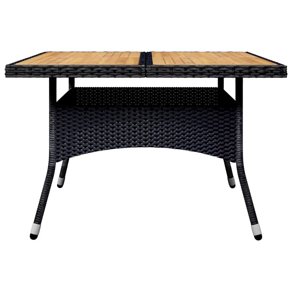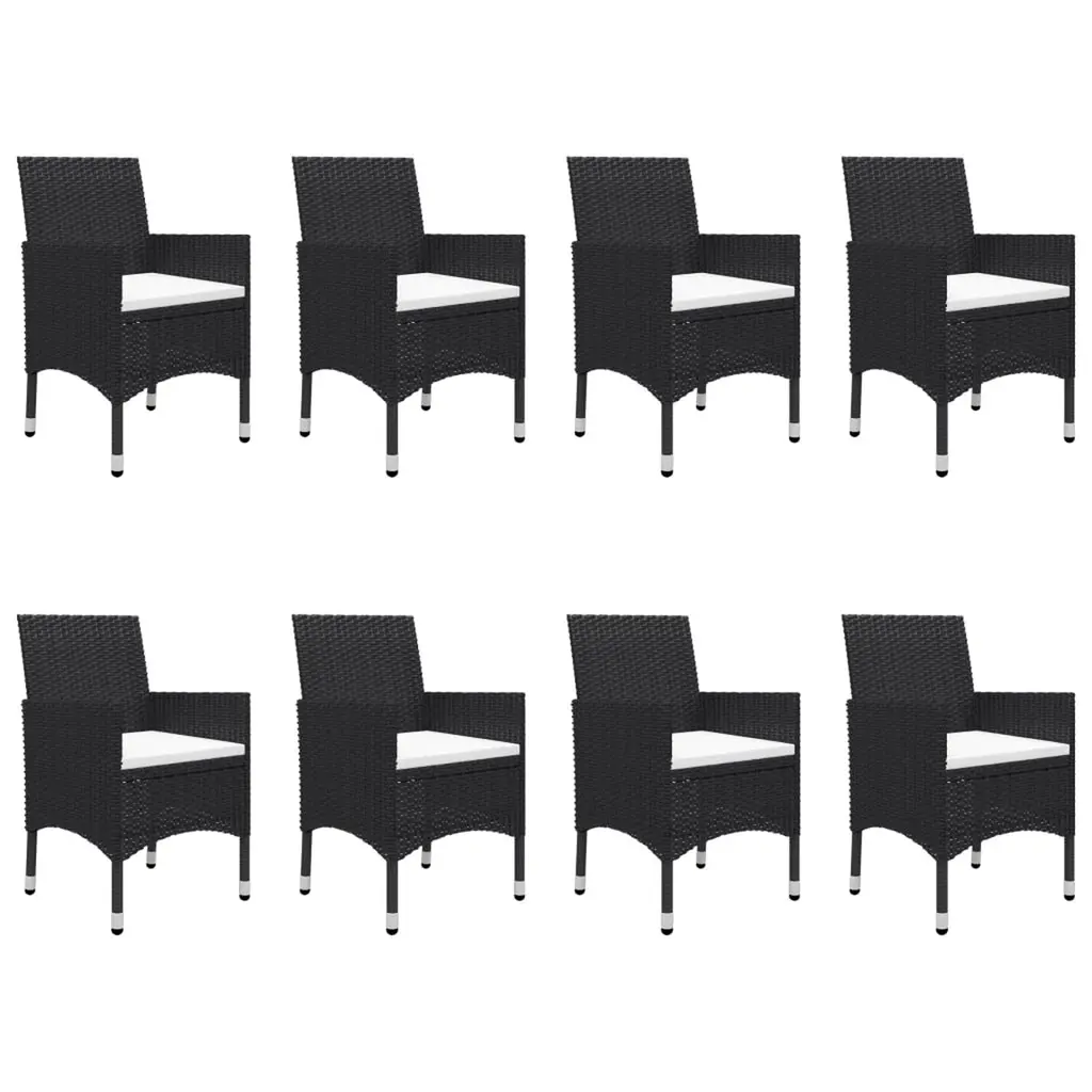 This 9-piece outdoor dining set blends comfort with style, serving as a welcoming centerpiece for your garden, patio, or terrace. Designed for easy dining experiences, it comes with a sturdy acacia wood table and eight comfy armchairs—perfect for leisurely meals in a modern setup. Stylish and Modern: The blend of black and cream with smooth textures creates a posh look that fits loads of outdoor styles. This set blends right into any garden or balcony, making it look even better.Durable Material: Made from UV-resistant poly rattan, this dining set can take on harsh elements and last for ages.Comfortable and Inviting: The well-cushioned seats have removable covers for a comfy dining experience that brings friends and family together over outdoor meals and celebrations.Spacious Design: With enough room for 8 people, it's perfect for hosting outdoor dinners, family feasts, or easy-going weekend brunches, ensuring everyone’s got space.Lightweight and Versatile: Each piece is easy to move and store, so you can rearrange as needed, making it suitable for both intimate and larger gatherings.