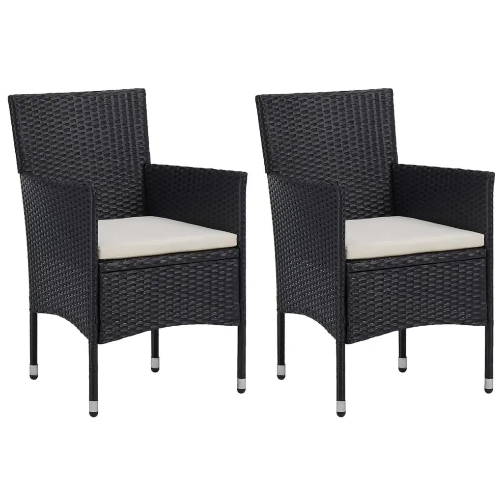 This 3-piece dining set is just what you need to enjoy the outdoors, mixing style and functionality for your balcony or garden. It has a rectangular table with a solid top and two comfy chairs, all sporting a sleek black finish that goes with any modern decor while providing a nice space for dining and socializing. Weather-Resistant Material: The high-quality PE rattan makes this set suitable for all weather, a smart choice for outdoor furniture.Elegant Design: The modern flair of this dining set gives a touch of sophistication to any outdoor space with its clean lines and sleek look.Versatile Use: It's not all about dining; this set is perfect for coffee catch-ups with friends or just chilling outside, making it a multifunctional addition to your home.Comfortable Cushions: Plush cushions are included to enhance the sitting experience, letting you enjoy long meals and hangouts without getting uncomfortable.Easy Maintenance: The materials are easy to clean, needing just a damp cloth to keep it looking great all season long.