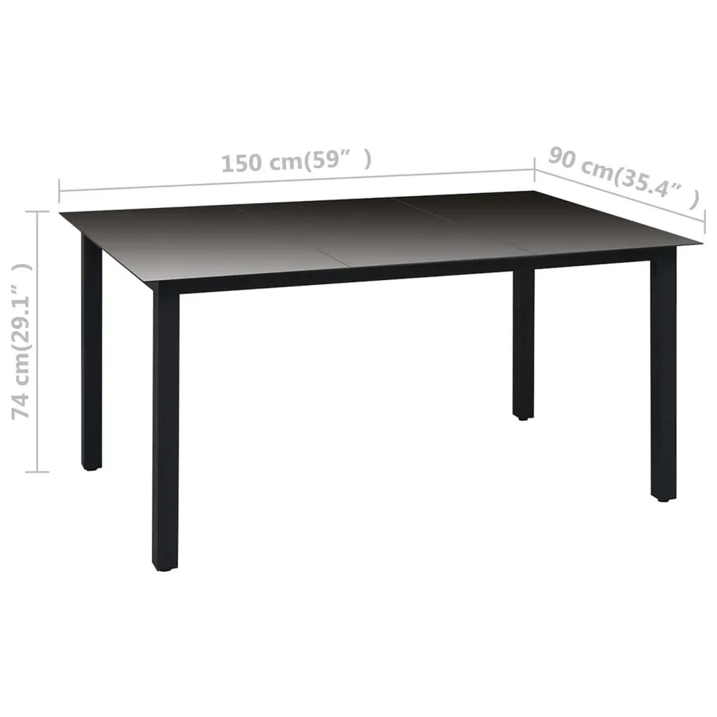 This 7-piece outdoor dining set includes a rectangular table and six comfy chairs, all designed to make your garden or balcony look fab. Perfect for summer BBQs, family meals, or just chilling out, it creates a cozy spot for everyone to enjoy the outdoors with its stylish black finish and smooth rattan feel. Built to Last: Made from weather-resistant PE rattan, this set is a solid investment for outdoor dining, standing tall against the elements. The powder-coated aluminum frame adds extra toughness, keeping everything stable for your gatherings.Comfy Seating: Each chair’s got flat armrests and a spacious seat, making it comfy for everyone. The natural rattan adds a dash of class and feels great on warm days.Reclining Backrest: Designed for flexibility, the chairs lean back in seven ways, letting you kick back in style after dinner, whether you're sipping coffee outside or diving into a good book.Easy Care: This dining set is super easy to clean; just a quick wipe with a damp cloth keeps it looking sharp. It’s best to cover it during rain or snow to keep it nice and extend its life.Perfect Sizes: The rectangular table is 59.1 in long and 35.4 in wide, giving you loads of space for meals while the chairs tuck under nicely, making it perfect for tighter outdoor spots.