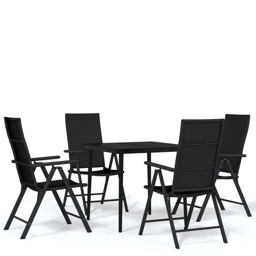 This 5-piece modern garden dining set is all about top-notch outdoor dining with its snazzy design and awesome functionality—perfect for any patio or garden. It's got a smooth square table and four comfy chairs, setting the scene for family get-togethers or lazy afternoons in the sun, mixing style with comfort perfectly. Adjustable Backrests: Each chair has a 7-position adjustable backrest, so you can find your comfy spot whether you’re dining or lounging. It’s perfect for all sorts of outdoor fun.Sturdy Construction: Made from high-quality powder-coated aluminum, this set stands up to the elements while staying good-looking, making it ideal for outdoor use.Space-Saving Design: The foldable chairs make for easy storage, so you can tuck it away without fuss when it's off-season or not in use.Elegant Appearance: With its smooth black finish and modern style, this dining set adds a classy touch to any outdoor area, really sprucing up your garden or patio’s look.Easy Maintenance: The synthetic glass surface on the table is not just smooth but easy to clean, offering a hassle-free dining experience with minimum fuss.