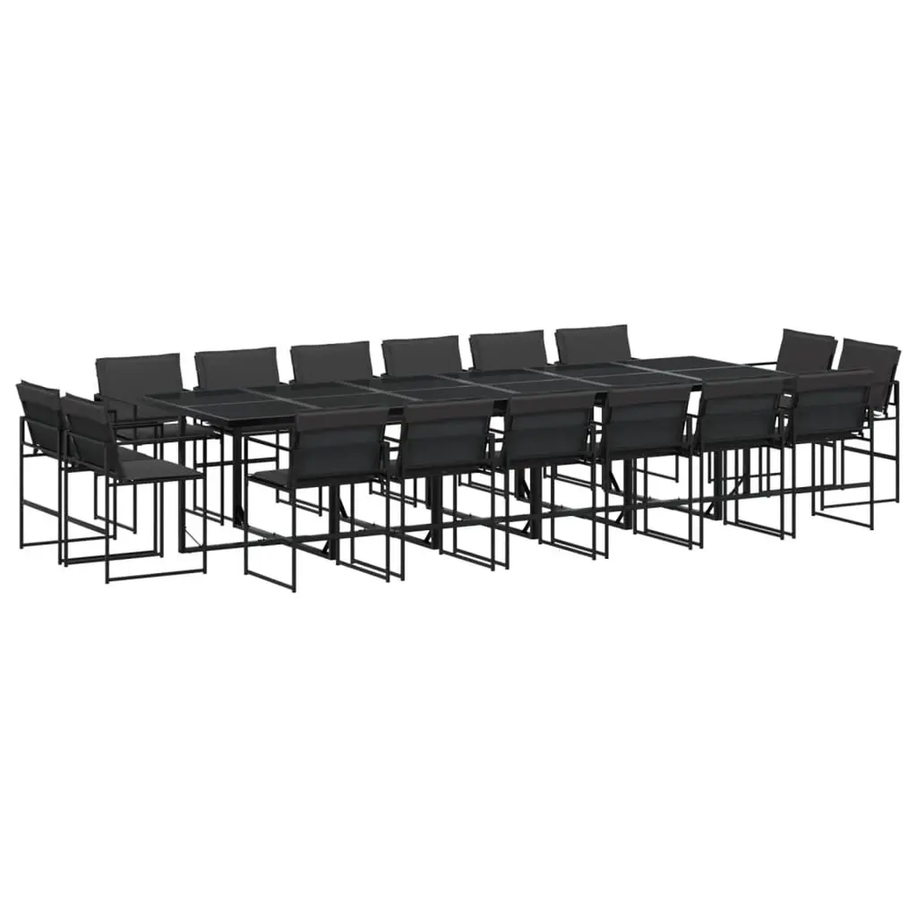 Vidaxl Dining Set Black Powder-Coated Steel, Pvc Rattan, Glass Large