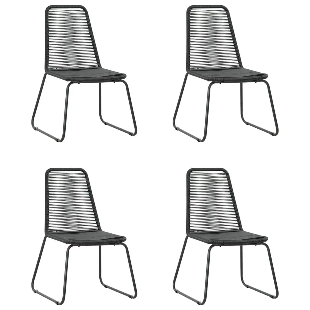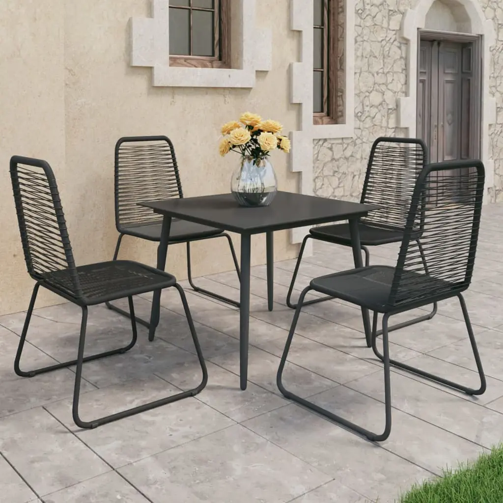 This 5-Piece Garden Dining Set is designed to boost your outdoor dining experience, featuring a sleek and modern style that fits right in with your garden, patio, or terrace. It comes with a nice square table and four comfy chairs, perfect for entertaining pals or enjoying cozy family dinners in the fresh air. Stylish Design: The modern look of this dining set features clean lines and smooth textures, making it a stunning focal point for any outdoor spot. Its black color makes it blend in beautifully with nature while giving a chic vibe.Durable Construction: Built with a sturdy powder-coated steel frame, this set is made to handle regular outdoor use. The synthetic PVC rattan adds to the longevity of the chairs and keeps them looking good.Lightweight: This dining set is surprisingly light, making it easy to move around for different occasions or change your outdoor layout.Easy Maintenance: Made with easy-to-clean materials, you can simply wipe down surfaces after a meal to keep it looking great. Just a damp cloth will do the trick!Space Efficient: Designed for compact outdoor areas, this dining set can fit up to four adults comfortably while making good use of your patio space, allowing for lively chats without feeling cramped.