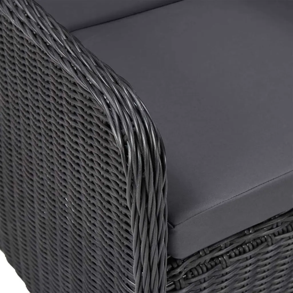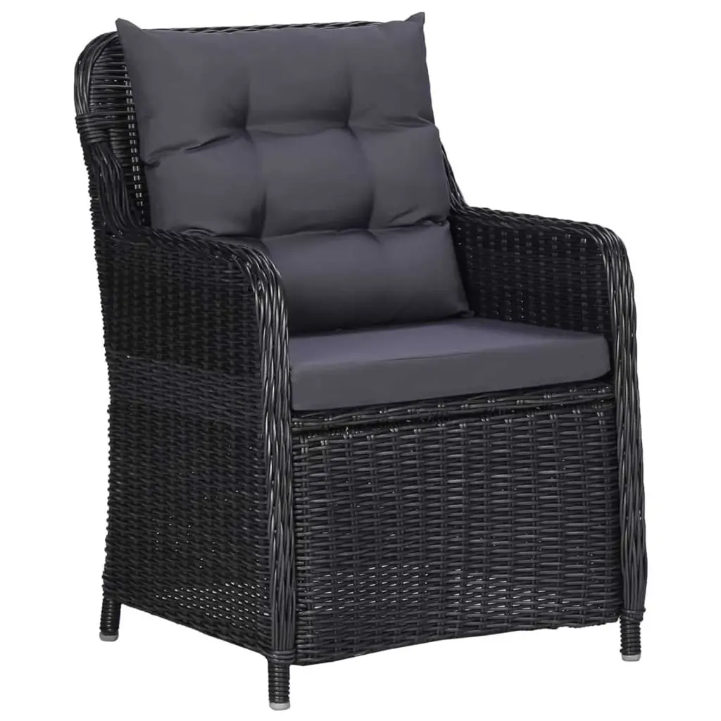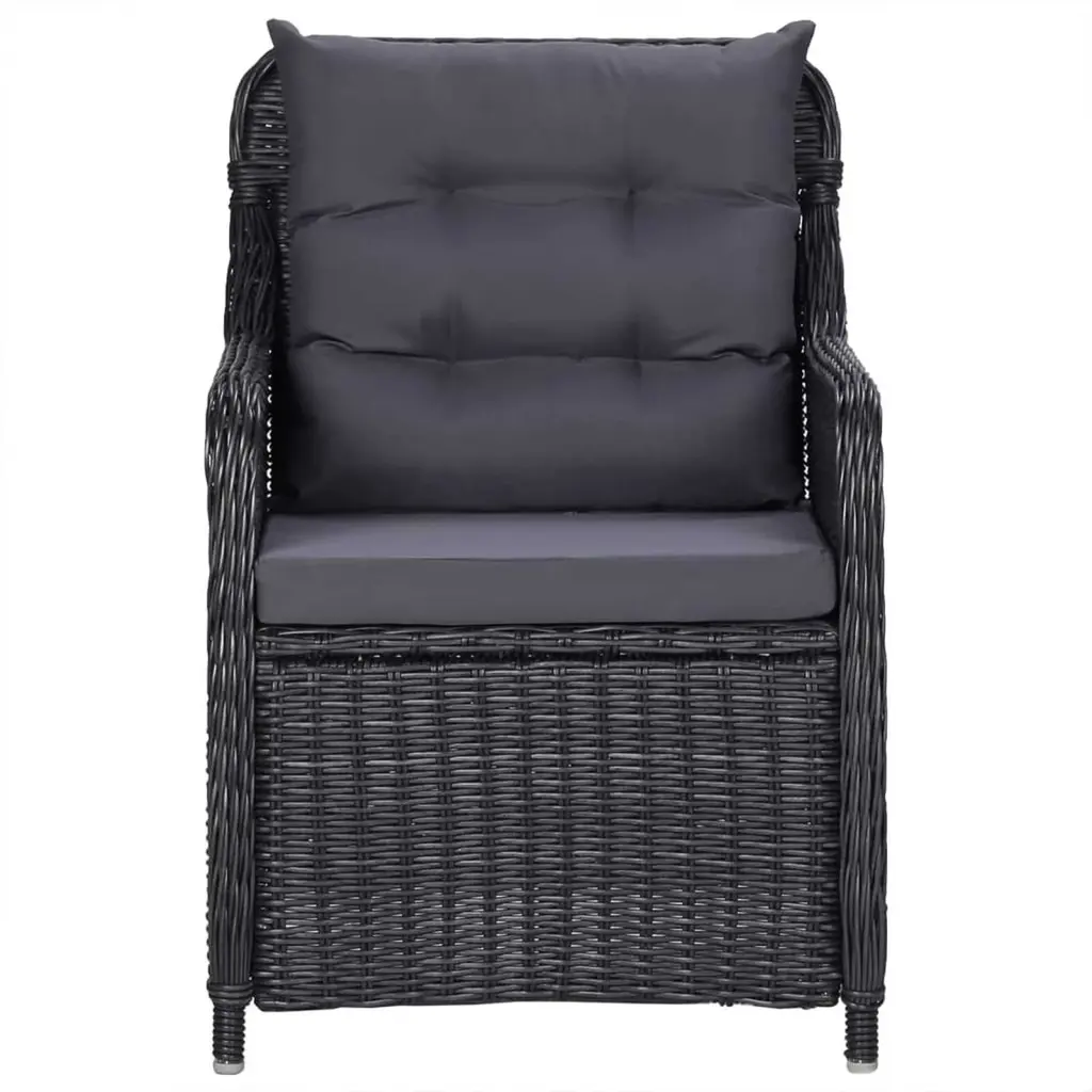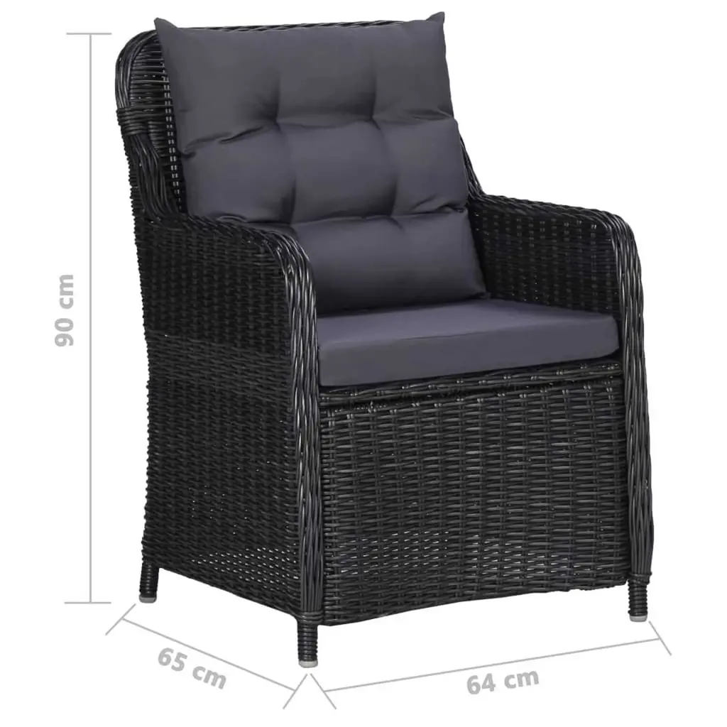 This 5 Piece Contemporary Garden Dining Set gives you an amazing outdoor dining experience with just the right mix of style and usefulness, featuring a rectangular table and comfy chairs. Made from solid acacia wood and sturdy PE rattan, this set boosts your outdoor area while making sure you get comfort and style during your meals, whether it's a relaxed lunch or a fancy dinner. The sleek black and brown mix nicely with the rich wood, making it a lovely addition whether on a patio, in a garden, or basking in the sun. Weather-Resistant Materials: The dining set's made from PE rattan that stands up to outdoor conditions, keeping its look and strength so you can dine outside worry-free.Spacious Seating: With room for four, this dining set is spot on for outdoor family get-togethers, giving everyone a comfy spot to enjoy their meal.Elegant Design: The modern design with clean lines and a smooth finish makes your outdoor setup look top-notch, perfect for entertaining or chilling outside.Cushioned Comfort: Each chair has a soft cushion made of 100% polyester, giving you a comfy place to sit while spending hours enjoying time with family and friends.Easy Maintenance: Made from materials that are low upkeep, this dining set cleans up easily after use, letting you kick back and enjoy your time outside without too much hassle.