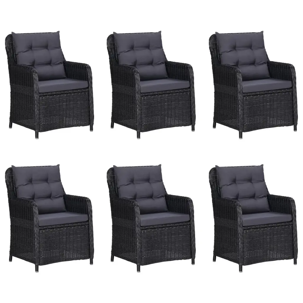 This 7 Piece Garden Dining Set in Black adds a stylish touch to your outdoor dining scene, blending functionality with a modern vibe. Perfect for patios, terraces, or backyards, it features a welcoming rectangular table with comfy seating, making it a top choice for gatherings and outdoor meals. Durable Build: Made from top-quality solid acacia wood and synthetic poly rattan, this set is built to hold up and can handle the weather. It's tough enough for outdoor use.Comfortable Seating: Each chair has thick cushions for those comfy long meals. The cushions come off for easy cleaning, keeping your dining spot looking sharp.Stylish Aesthetic: The sleek black and grey color combo adds a chic touch, fitting in with any outdoor decor. Its smooth design enhances your patio or garden's style.Easy Assembly: Putting this dining set together is a cinch, with all the tools included, making it a breeze to set up for your outdoor feasts.Space Efficient: This set is designed for both style and function, with generous table and chair sizes that don’t crowd your space. Great for compact outdoor areas, it can easily fit six without feeling cramped.
