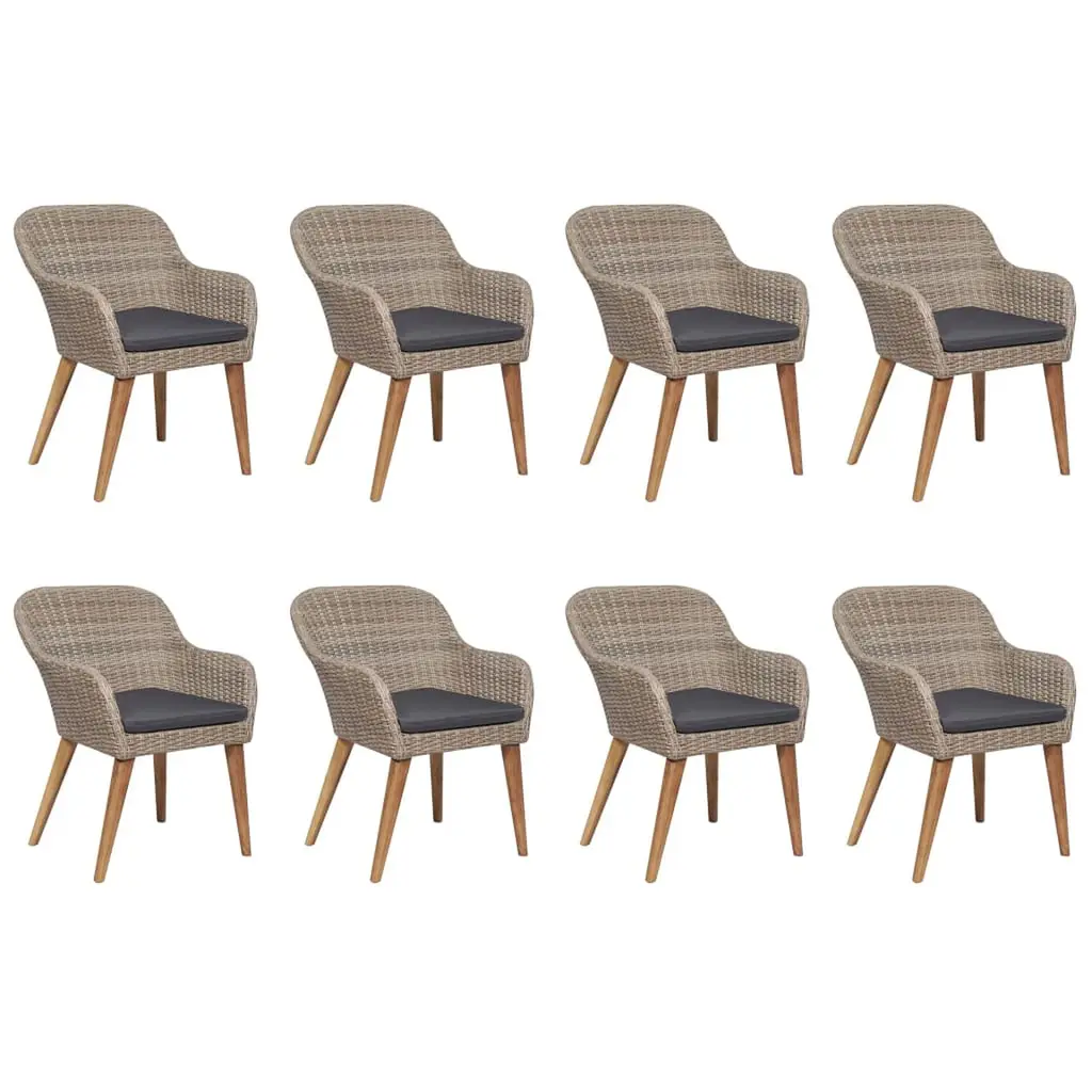 This 9 Piece Poly Rattan Garden Dining Set gives you a fantastic option for outdoor dining and chilling out. With a big rectangular table, eight comfy chairs, and plush cushions, it really brightens up any garden or patio, making it perfect for family and friends to hang out for meals, drinks, or just to enjoy the outdoors. The warm brown shades blend beautifully with different outdoor decor, creating a welcoming feel wherever you place it. The set features weather-resistant PE rattan, ensuring it lasts long while looking sharp. With space for up to eight people, this dining set is perfect for hosting gatherings and family meals outside. The cushions have zippers, making them easy to remove and wash, so upkeep is a breeze. Built with a powder-coated steel frame, the set holds up well in all types of weather, offering extra stability and strength. Its contemporary design matches current trends, showcasing clean lines and a modern vibe that fits various outdoor settings.