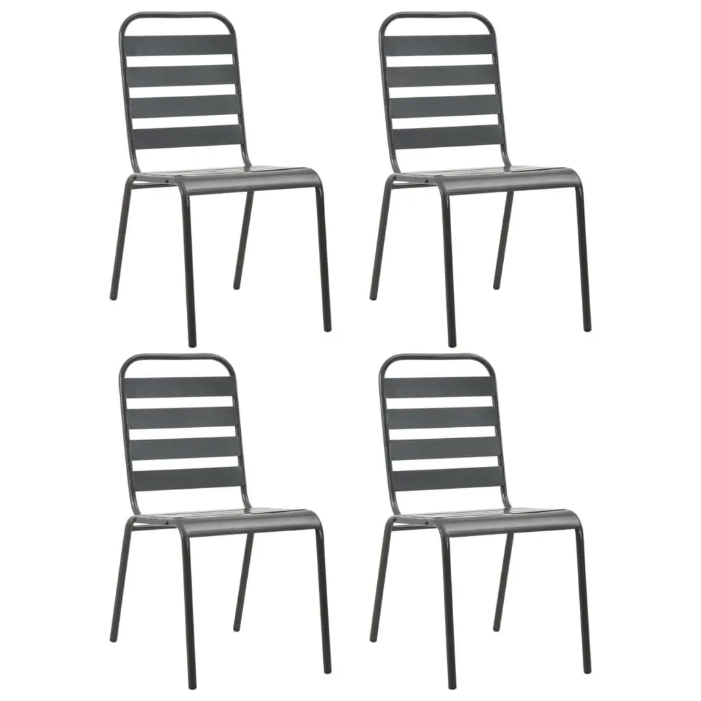 This 5-piece garden dining set combines style with practicality, making it perfect for small get-togethers or bigger outdoor parties. Its sleek dark gray look and modern vibe are great for patios, balconies, or dining rooms, while the solid construction holds up to everyday use effortlessly. The dining set looks modern with its matte finish and sturdy steel build, adding style to any space. Each chair is comfy, making sure dining is a joy, whether you're outside or inside. Stackable chairs mean you can store them away easily without taking up too much room, perfect for places short on space. This set’s low maintenance; just wipe it down to keep it looking fresh. With enough room for five, this dining set is great for family dinners and gatherings, turning moments together into fun times.