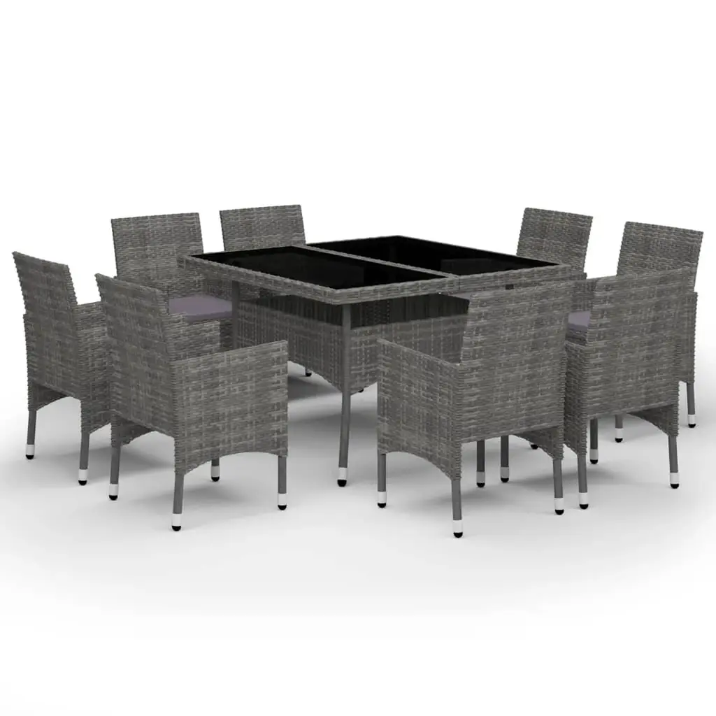Vidaxl Dining Set Grey, Black, Dark Grey Pe Rattan, Steel, Aluminum, Wpc