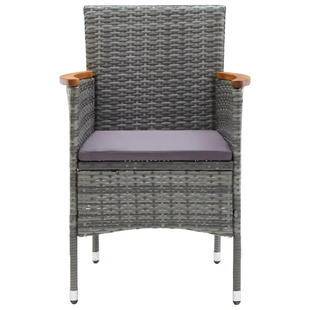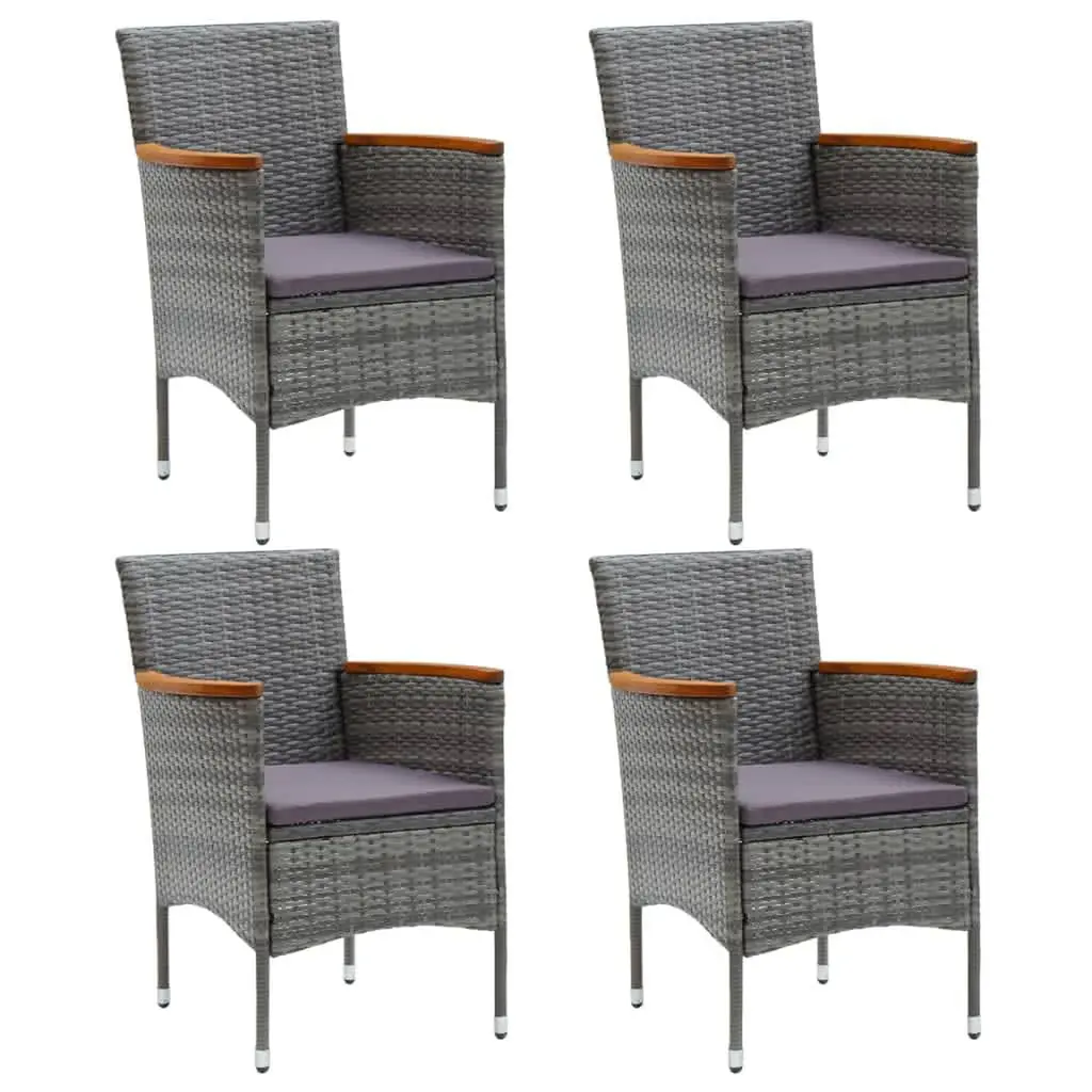 This 5-piece garden dining set is a stylish and practical addition to any outdoor space, giving you plenty of seating for meals and hangouts. The set features a square dining table and four comfy chairs, all made from sturdy materials built to brave the weather while adding a bit of charm to patios, gardens, or balconies. Durable Build: Made from tough PE rattan and a solid acacia wood frame, this set offers long-lasting use. The powder-coated steel legs provide both stability and style.Comfort First: Equipped with plush, weather-resistant seat cushions, this dining set ensures you're comfy during long outdoor meals.Versatile Usage: Perfect for any outdoor event, from casual family lunches to fancy dinner parties, making it your outdoor living area’s highlight.Stylish Aesthetic: Its rustic design blends in beautifully with nature, adding a sophisticated and warm touch to your outdoor decor.Easy to Clean: The removable cushion covers make keeping this set neat and tidy a piece of cake.
