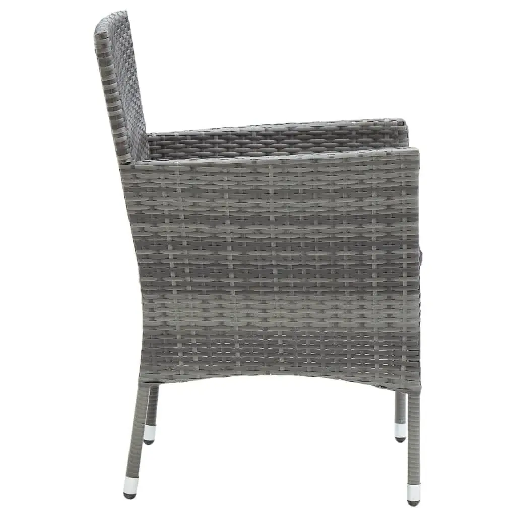 This 5-piece garden dining set gives you a stylish yet practical way to enjoy outdoor dining. Featuring a rectangular table and four comfy chairs, it's designed to elevate your patio or garden while being cozy and functional. The grey synthetic poly rattan finish looks great and is tough too, making it perfect for gatherings or laid-back meals. Imagine hosting barbecues with your friends or sitting down for a meal with family; this lovely set is sure to be the highlight of your outdoor space. Durable Materials: Built with weather-resistant PE rattan, this garden dining set stands strong against the elements, making it suitable for year-round use. Its sturdy metal frame ensures long-term support, letting you enjoy dining outdoors without any worries.Comfortable Design: Each chair comes with plush cushions made from 100% polyester. Not only do these cushions provide comfort during meals, but they're also removable with zip closures for easy cleaning, giving you both convenience and hygiene.Contemporary Style: The modern design boasts clean lines and a stylish grey color scheme, fitting seamlessly into various outdoor themes. Its sleek looks make it a great fit for any balcony, patio, or garden.Spacious Seating: This set fits up to five people, providing enough room for family and friends. Whether you're enjoying a casual brunch or hosting a big dinner, this dining set is ready for any occasion.Low Maintenance: Thanks to a weather-resistant coat, it's easy to care for and keeps its good looks with simple cleaning using mild soap and water, making it a handy addition to your outdoor furniture collection.