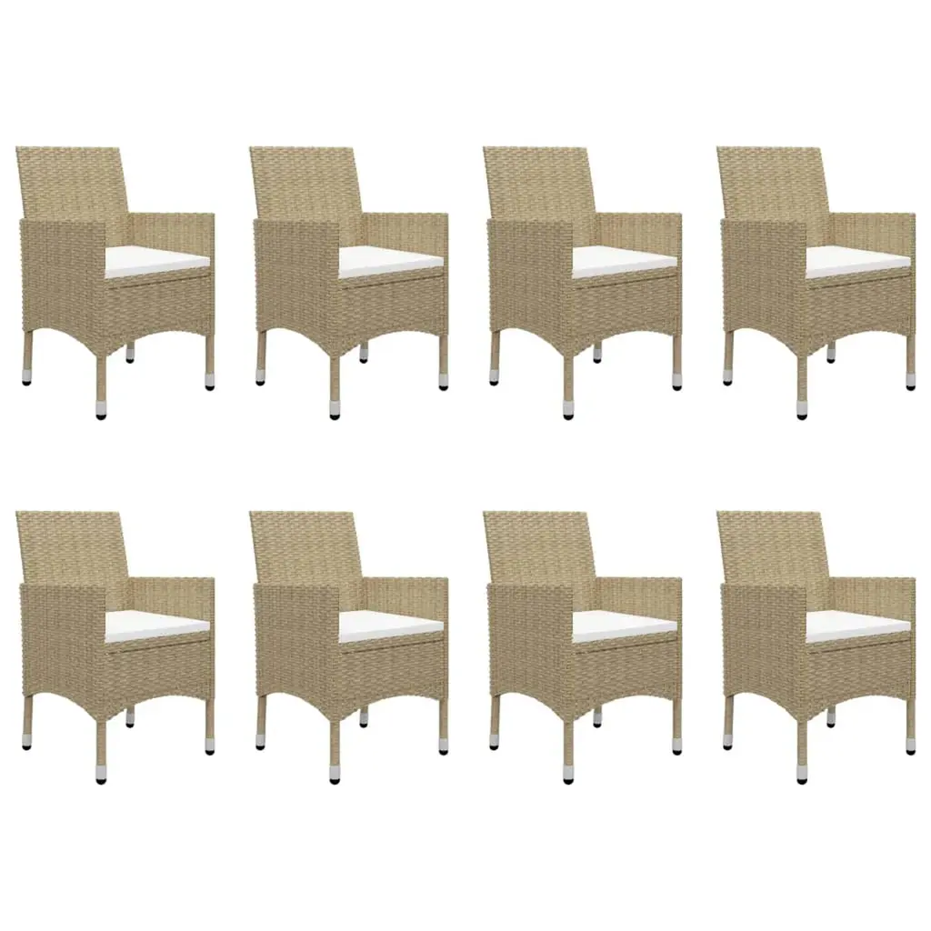 This 9-Piece Modern Garden Dining Set is designed to blend comfort and style for those outdoor dining moments. It includes a spacious table and eight well-crafted chairs, making it ideal for family meals, gatherings, or lazy brunches, turning your garden, patio, or terrace into a lovely dining escape. Chic Ergonomic Design: The set has a sleek look, with a smooth finish and curved armrests for great comfort, making it spot on for leisurely meals. Weather-Resistant Materials: Made from solid acacia wood and synthetic rattan, this dining set is designed to take on various outdoor conditions. Spacious Table: The 78.7 in long table easily fits larger gatherings, providing loads of room for food and drinks. Convenient Storage: The cushions have a zipper closure, allowing for easy maintenance and storage during nasty weather. Stylish Color Palette: The mix of brown and beige colors not only adds charm but goes well with various outdoor decor themes.