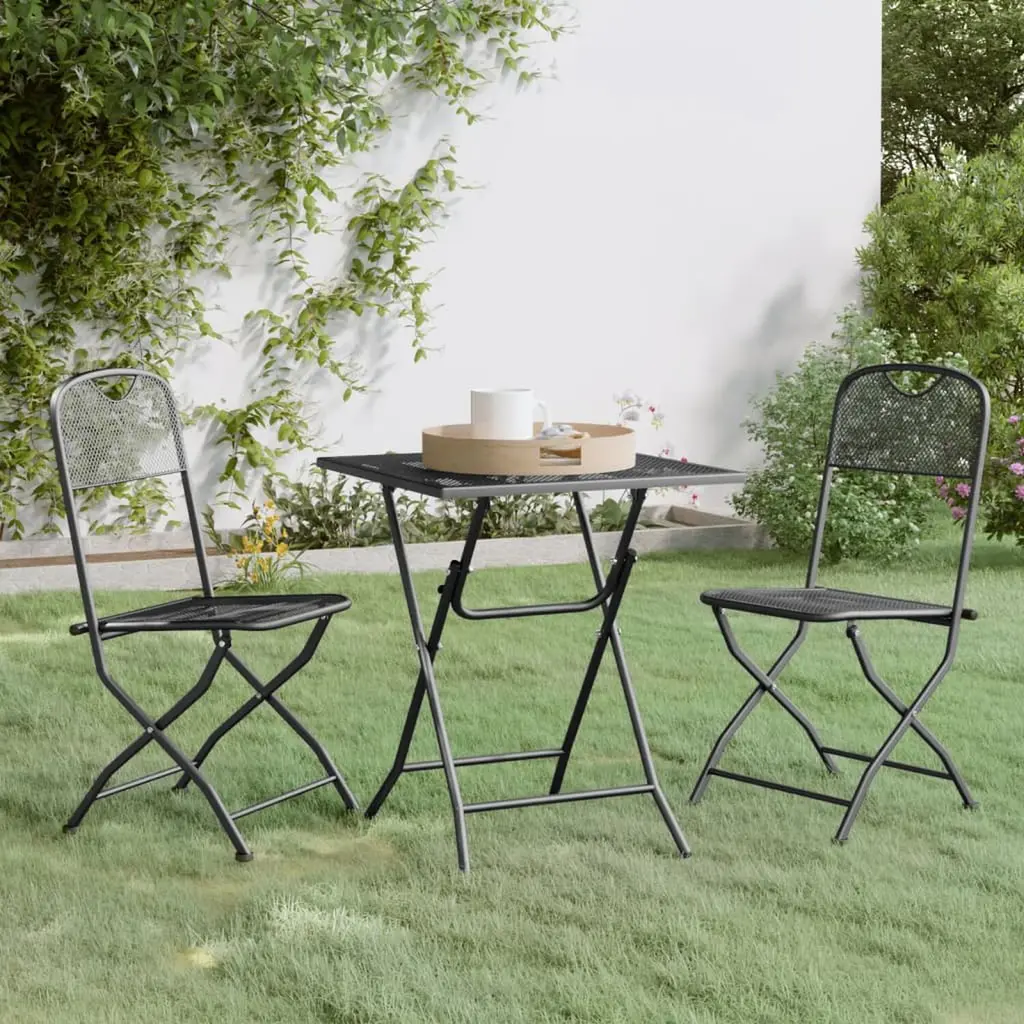 Vidaxl Garden Dining Set Anthracite Expanded Metal Mesh Small Foldable