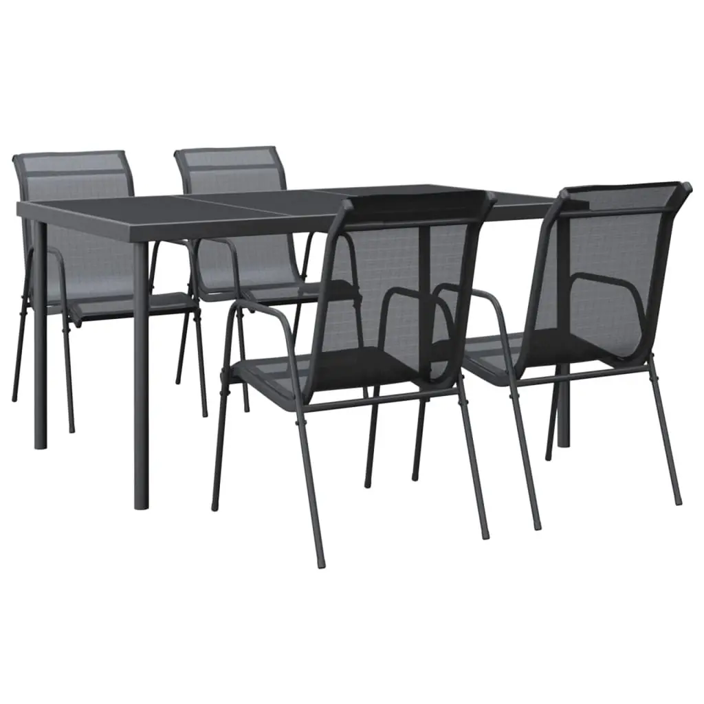 This 5-piece garden dining set is just what outdoor dining fans need for both comfort and style. With its sleek look and strong build, it’s perfect for sprucing up your patio or balcony while offering cool features that adapt to your needs, making it ideal for both gatherings or quiet meals in the sun. Adjustable Backrest: The set lets you adjust the backrest to six different positions, so everyone can find their comfy spot.Robust Frame: Made from high-quality powder-coated steel, this furniture is built to last and is super stable, ready for daily outdoor use.Space-Efficient Storage: The foldable design makes it easy to stash away when not in use, keeping your outdoor area clutter-free.Weather-Resistant: Built to withstand the elements, this set is simple to maintain while keeping its good looks all year round.Modern Style: The anthracite finish with clean lines fits right in with modern decor, making it a stylish addition to any outdoor spot.