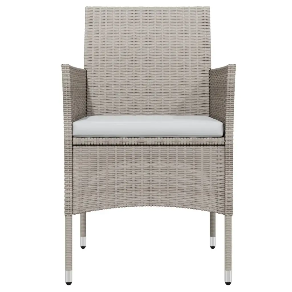 This 5 Piece Garden Dining Set is a stylish and practical addition to any outdoor area, perfect for enjoying meals on a balcony, terrace, or patio. The sleek design in beige and black tones fits contemporary themes while providing comfort and durability for gatherings with family and friends. Materials: Made from water-resistant PE rattan for durability and easy upkeep.Design: The smooth glass tabletop makes dining nicer and cleaning simple.Comfort: Comes with comfy padded cushions in sturdy fabric for long sit-down meals outdoors.Capacity: Seats up to 4 adults, ideal for family dinners or casual hangouts.Frame: Strong powder-coated steel for a solid base resistant to the elements.