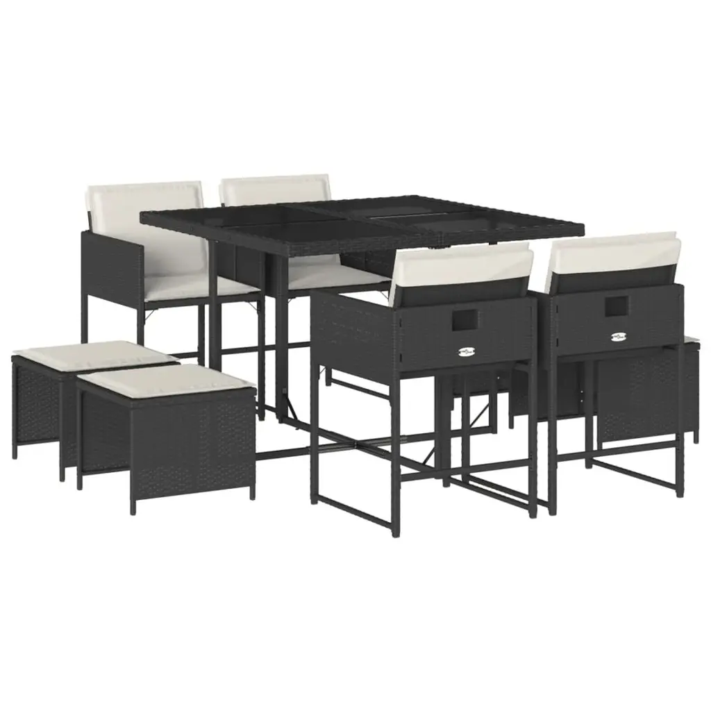 This 9-piece garden dining set perfectly mixes style and practicality, making it spot on for al fresco dining on your patio or in your garden. With its modern poly rattan frame and tough acacia wood surfaces, this set is made to up your outdoor game, providing both comfort and style for gatherings with family and friends. Spacious Seating: With room for eight guests, this garden dining set is perfect for summer parties and family meals outdoors. There's loads of space around the table for great chats and delicious dinners under the sky. Superior Comfort: Each chair comes with comfy cushions that have removable and washable covers, making sure your guests stay comfy during long gatherings. The cushions add a soft touch while looking stylish. Durable Construction: Made from powder-coated steel and poly rattan, this set is designed to handle the weather, so you can enjoy it for years to come. The UV-resistant materials stop fading and wear, keeping it looking fresh for ages. Stylish Appearance: The mix of beige and brown in the woven texture makes it a chic addition to any patio or garden, giving it a modern look. Its smooth surface looks great and is easy to clean and look after. Practical Folding Feature: The foldable design makes it easy to store when you're not using it, making it a breeze for those with limited outdoor space. Enjoy hassle-free storage in the off-season or when you need space for other bits and bobs.