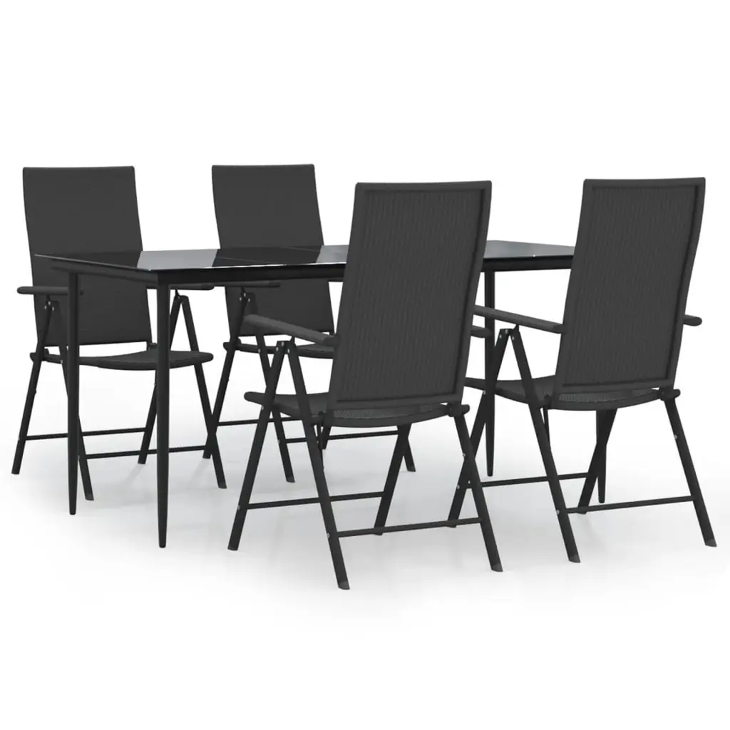 This 5-Piece Garden Dining Set merges style and practicality, perfect for outdoor get-togethers in gardens, patios, or balconies. With a contemporary look, it boasts sleek lines, a smooth finish, and the flexibility to suit different occasions, making it ideal for family barbecues or serene evening meals. Sturdy Construction: This set has tough steel frames with a durable powder coating, ensuring it can handle daily outdoor use.Versatile Design: The chairs and table fold completely and have adjustable recline settings, making them easy to store or take with you.Easy Maintenance: The smooth tempered glass tabletop is a breeze to clean, giving you a polished look without the hassle.Comfort Features: Each chair has a multi-position backrest so you can kick back and relax just how you like.Stylish Aesthetic: The mix of black and brown poly rattan looks great, giving your outdoor space a lovely modern vibe.