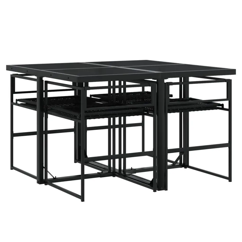 This 5-Piece Garden Dining Set is all about comfort and style, making it a great addition to any patio or garden. With its sleek black and cream white look, it creates a modern vibe—perfect for outdoor dining or family hangouts. Durability: Made from UV-resistant poly rattan, this dining set can withstand the elements, ensuring long-lasting use without fading or degrading. Comfort: Every chair features a soft cushion covered in weather-resistant fabric, giving you the perfect spot for outdoor meals, letting you and your guests dine in style. Space Efficiency: The foldable chairs fit neatly under the table, making storage a breeze, ideal for smaller outdoor spaces. Versatile Use: This set isn’t just for dining; it’s perfect for social events and chilling in the garden, enhancing your outdoor experience. Sturdy Structure: The powder-coated steel frame and tempered glass top ensure stability and elegance, supporting up to 242.5 lbs per seat.