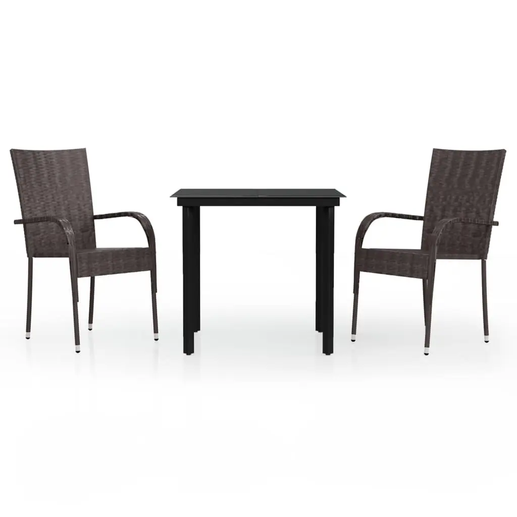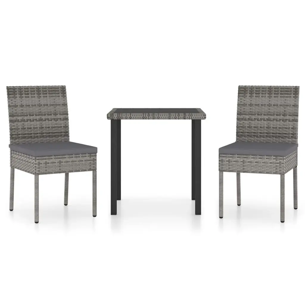 This 3 Piece Garden Dining Set offers a stylish and practical outdoor dining option, perfect for balconies or gardens. The black and grey design fits right in with any modern space, making alfresco meals with family or friends a breeze. Made from high-quality weather-resistant PE rattan, this set ensures lasting durability outdoors.Modular design lets you rearrange pieces for your needs, adding flexibility and convenience.Seat cushions have weather-resistant fabric for comfort during meals or relaxation.The powder-coated steel frame adds stability and looks sleek.Easy to maintain; just wipe it clean to keep it looking great.