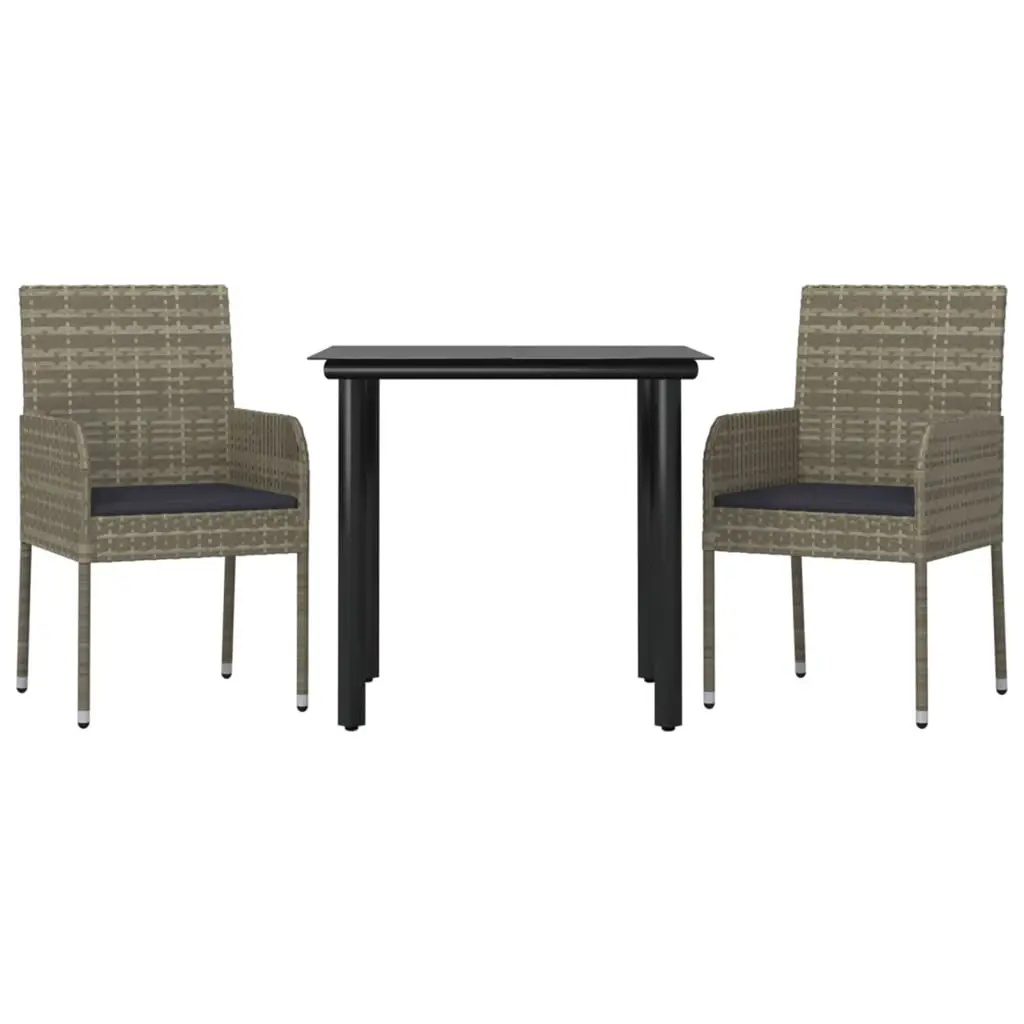This 3-Piece Garden Dining Set offers a perfect mix of function and style for outdoor dining. It’s compact, making it just right for balconies, patios, or gardens, while the sleek black and grey design brings a modern touch, enhancing any outdoor place with elegance and practicality. Flexible Arrangement: The modular design lets you set this dining set up to fit your space and vibe, perfect for every occasion. Weather-Resistant: Made from high-quality poly rattan and powder-coated steel, this set can handle different weather conditions, so you can eat outside without worry. Included Cushions: It comes with comfy cushions that are weather resistant, designed for a lovely seating experience. Compact Design: Perfectly sized for smaller outdoor areas, the garden table is 31.5 in long, which is fab for balconies or snug backyards. Sturdy Construction: The strong powder-coated steel frame guarantees stability and durability, making this dining set both snazzy and practical.