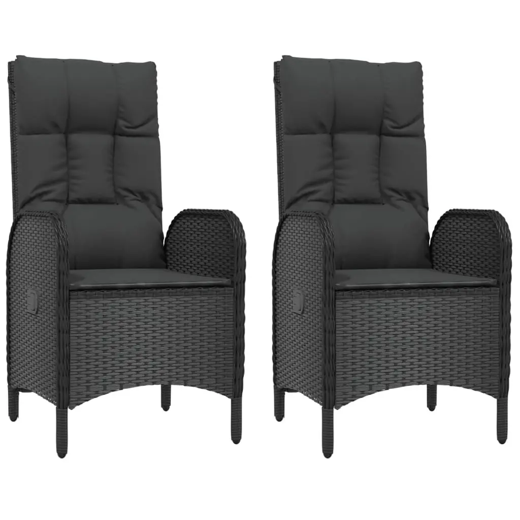 This 5-piece garden dining set shows off style and practicality, perfectly set up for enjoying meals or chilling outside. With a sleek black finish and smooth feel, it adds a modern vibe that fits any balcony or terrace, ready for gatherings and unforgettable moments with your mates. The tough powder-coated steel frame provides solid stability for daily outdoor use, allowing the chairs to handle family meals and laid-back get-togethers. UV resistant and stain-resistant PE rattan keeps the set looking fab through different weather, making it a smart pick for outdoor spaces. The included cushy seat and back cushions, made from weather-ready fabric, give an extra layer of comfort for those long chill sessions outside. Adjustable footrests let you find your sweet spot for sitting, and the folding backrest means everyone can lounge in style. It all comes with four reclining chairs and a snazzy tempered glass table, blending fun and luxury, perfect for both meals and relaxation.