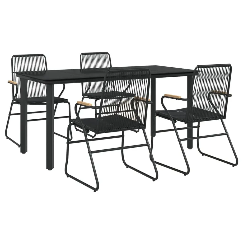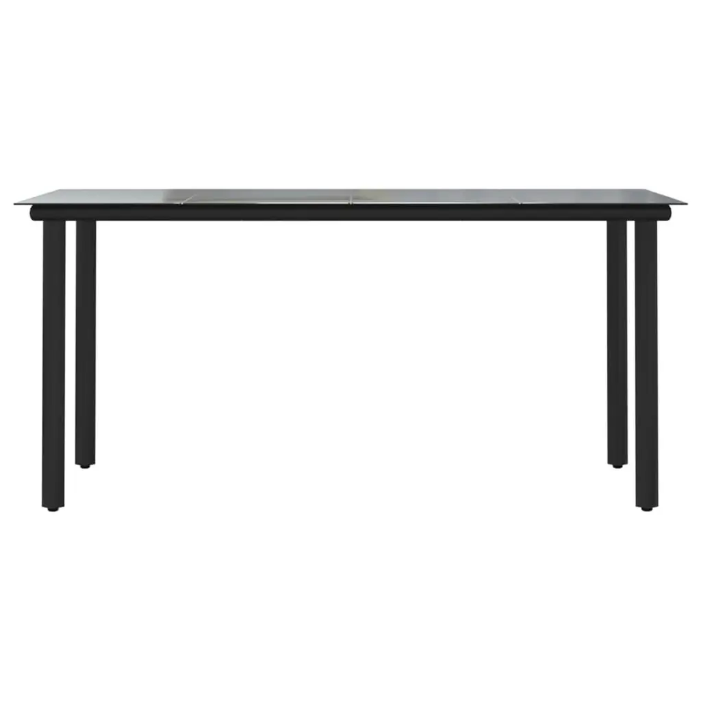 This 5 Piece Garden Dining Set is the perfect mix of practicality and modern looks, ideal for anyone wanting to boost their outdoor experience. It features a spacious rectangular table and four matching chairs, all in a stylish black that instantly lifts the vibe of your patio, garden, or terrace while giving you a comfy dining area. Durable Construction: The solid steel frame provides stability and longevity, built for daily use. You’ll enjoy reliable seating for family meals or entertaining guests without a worry.Tempered Glass Top: The easy-to-clean glass tabletop adds style and practicality. Its smooth finish means you can quickly wipe up spills, keeping the set looking good.Comfortable Seating: This set seats up to five adults comfortably, making it perfect for gatherings. It creates a welcoming space for meals outdoors.Modern Aesthetic: With sleek lines and muted tones, this set enhances any outdoor decor. It's a great match for contemporary settings, offering a stylish backdrop for any event.Versatile Use: Ideal for outdoor dining, but also great for board games, crafts, or casual get-togethers. Its flexible nature meets all your outdoor needs.