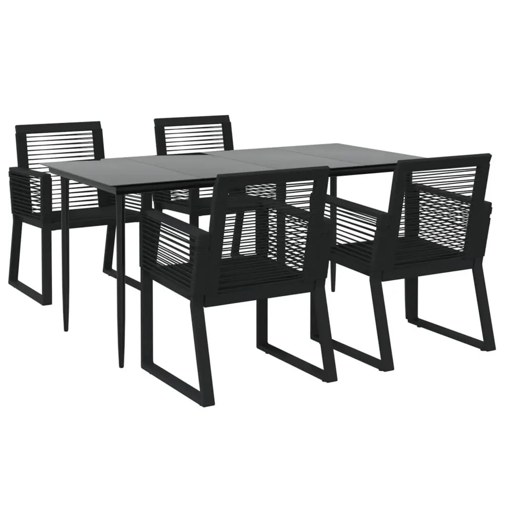 This 5-Piece Rectangular Garden Dining Set combines modern aesthetics with practical function, making it an ideal addition to any outdoor area. Featuring a sleek table complemented by four ergonomic chairs, this set is perfect for intimate gatherings or larger family meals, set against the backdrop of your garden or patio. Ergonomic Design: The chairs are ergonomically made for a comfy experience, perfect for long dinners and social events.Durable Tempered Glass: The tabletop is made from tempered glass, giving a sleek surface that’s pretty and also weather-resistant, making maintenance a breeze.Sturdy Construction: Strong steel frames make the furniture set tough enough for outdoor use, ensuring it stays solid even in the wind.Practical for Outdoor Use: Made for dining outside, this set features UV and water resistance, making it a great pick for gardens, patios, and balconies.Easy Assembly: The dining set comes with everything you need and simple instructions for quick setup, so you can enjoy your new furniture without any hassle.