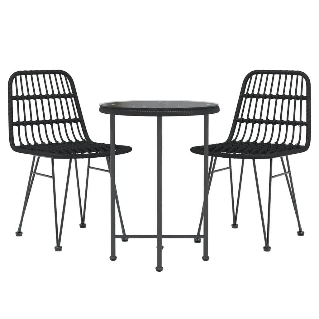 This 3-piece garden dining set mixes style with practicality, making it perfect for outdoor dining fans. Made from high-quality synthetic poly rattan with a sturdy steel frame, it not only enhances your outdoor look but also makes for comfy meals or get-togethers on your balcony or patio. Durable Construction: The garden dining set is made with weatherproof PE rattan, helping it stand up to the elements and keep looking good over time.Modern Aesthetic: Featuring a sleek, contemporary style, the round table and rattan chairs add class to your outdoor area, making it perfect for family dinners or brunch with pals.Lightweight and Portable: Despite being robust, the set's light weight makes it a breeze to move around for those impromptu outdoor get-togethers.Easy Maintenance: The tough glass tabletop and synthetic materials provide a smooth surface that's simple to clean, keeping your dining spot tidy and inviting.Compact Design: Ideal for tight outdoor spaces, this set offers a perfect dining solution for balconies or small patios, comfortably seating up to 2 people.