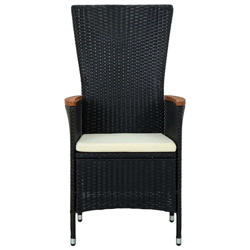 This garden dining set, crafted for outdoor elegance, is perfect for leisurely meals on your terrace or patio. Featuring sturdy construction and a stylish design, the set includes a square table and four comfortable chairs, making it an ideal choice for gatherings with friends or family. Weather-Resistant Materials: Made from durable PE rattan that resists fading and moisture, ensuring your furniture set lasts through the seasons. Adjustable Armrests: The armrests can be adjusted for perfect positioning, catering to different preferences and making every meal a comfortable experience. Easy Maintenance: The removable covers mean cleaning is simple; just unzip and wash to keep your dining set looking fresh. Includes Cushions: Cushions provide added comfort, perfect for extended dining or socializing, allowing you and your guests to relax and enjoy. Sturdy Construction: Built with strong powder-coated steel frames, this set offers stability during use while maintaining a lightweight feel for easy rearrangement.