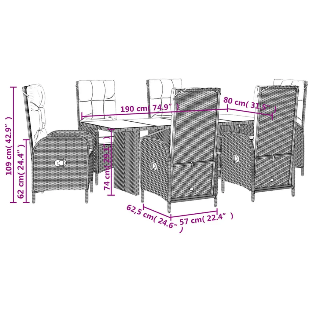 This stunning 9-piece garden dining set is the definition of outdoor elegance, made for those who love al fresco meals or just chilling in the garden. Its sleek, modern look fits in perfectly with any outdoor spot, inviting friends and family to share meals together, framed by the attractive black poly rattan and solid acacia wood details. Adjustable Armrests: This set has adjustable armrests so you can get comfy at your own liking. Great for long get-togethers, ensuring everyone feels relaxed. Beautiful Design: Each piece has a modern touch that looks brilliant in your outdoor area. The uniform black color and woven texture give off a classy vibe, perfect for entertaining or family dinners. Robust Construction: Made from tough poly rattan and powder-coated steel, this dining set is built to last, so it’ll be a go-to in your outdoor decor for years. The materials are as tough as nails in all weather, keeping their looks whatever the season. Comfortable Cushions: Each chair comes with fluffy cushions made from weather-resistant fabric that you can take off for easy cleaning. This makes upkeep a breeze, giving you more time to kick back and enjoy your meals outside. Generous Size: With enough space to fit up to eight people, this set is spot on for family get-togethers or garden parties. Its roomy size creates a friendly atmosphere where everyone’s welcome around the table.