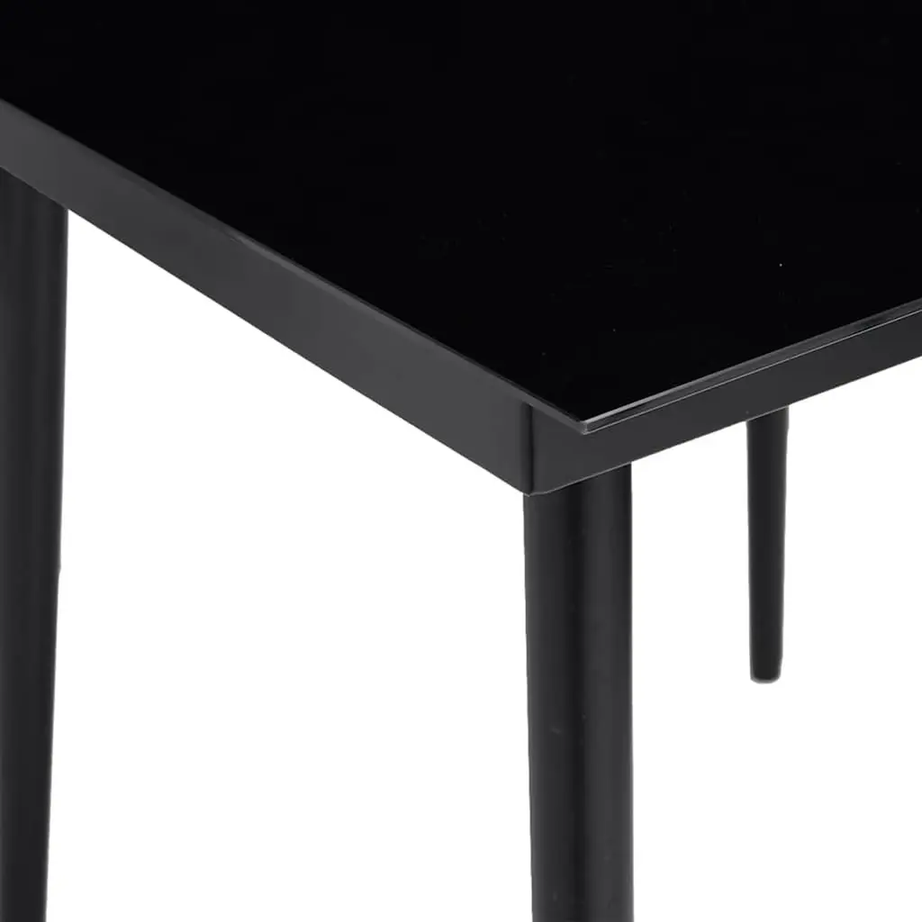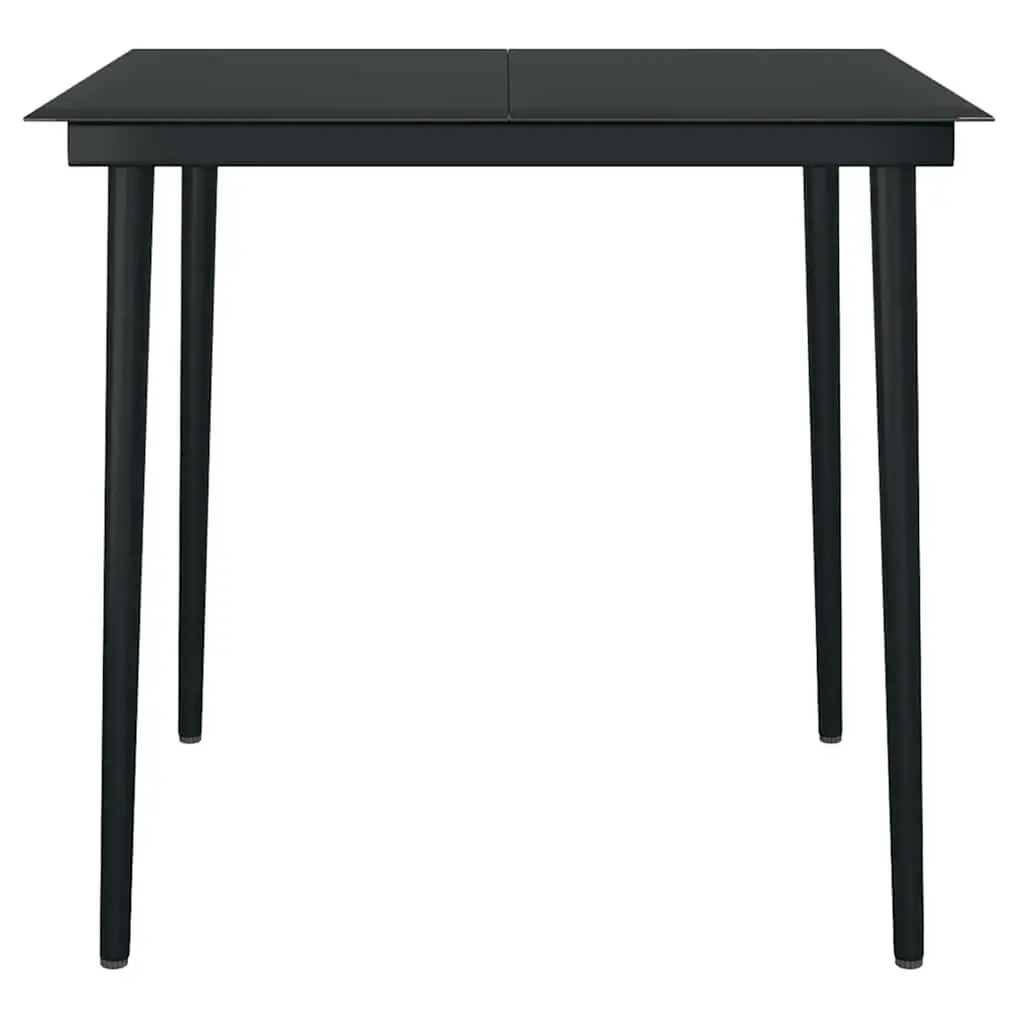 This 5-Piece Contemporary Garden Dining Set brilliantly combines modern design with great functionality, ready to spice up your outdoor dining. Enjoy the sun and good company in comfort, thanks to its sleek powder-coated steel frame and UV-resistant poly rattan, adding a stylish touch to any backyard or patio setup. Modern Aesthetic: The dining set showcases a chic mix of black synthetic rattan and tempered glass, creating a stylish setting for both casual and formal meals. Its sleek lines and square shape give a contemporary vibe to your outdoor area.Comfort and Space: Roomy enough for four adults, each chair has smooth textures for long mealtime comfort. The generous chair dimensions create a relaxed dining atmosphere.Durable Build: Crafted from tough, UV-resistant materials, this dining set is built to last outdoors, so you can enjoy it for years. The powder-coated finish boosts durability, keeping it looking lovely in all weather.Easy Maintenance: The tempered glass tabletop is not only stylish but super easy to clean—just wipe it down with warm water to keep it fresh.Versatile Usage: You can place this set in various outdoor spots—gardens, balconies, and patios—making it perfect for meals, gatherings, or morning coffee.