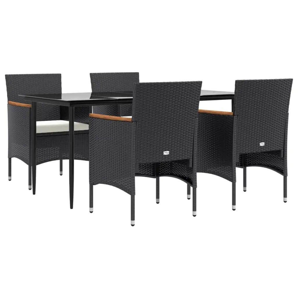 This 5-piece garden dining set mixes modern style with comfy practicality, making it spot on for hosting alfresco get-togethers or simply enjoying quiet times with family. The sleek black finish paired with hard-wearing materials gives a classy touch that effortlessly boosts any garden or patio vibe, perfect for outdoor meals or casual lounging. This dining set has a strong powder-coated steel frame for long-lasting stability and durability, making it a reliable option for outdoor use. Each chair comes with a comfy, weatherproof cushion to boost comfort, perfect for sitting back during lunch or evening hangouts. The tempered glass tabletop not only looks smart but also offers loads of space for serving food, drinks, or decorations, mixing functionality with style. This adaptable set is built for outdoor dining, fitting for everything from family meals to vibrant backyard barbecues. Spaciously designed to seat four comfortably, this setup is ideal for socializing, entertaining friends, or just enjoying a serene meal outside.
