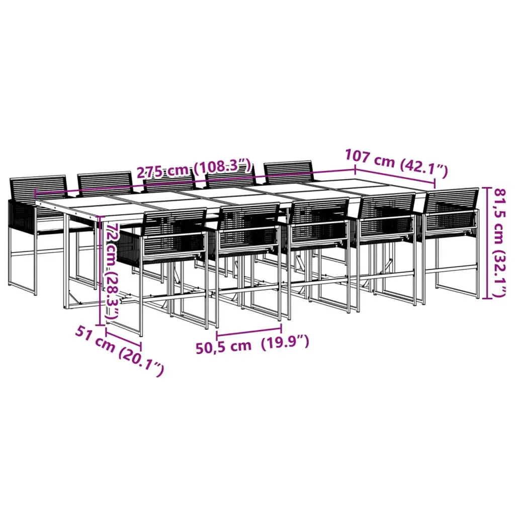 This 11 Piece Garden Dining Set is all about making your outdoor meals more enjoyable with its modern look and practical features – perfect for family gatherings or entertaining friends in the garden or on the patio. The sleek black poly rattan and glass surfaces fit snugly in all outdoor spaces, while also being comfy and convenient for everyone. Weather-Resistant Materials: Made with UV-resistant materials, this set is built to last in all sorts of weather, so you can enjoy garden dining without worrying about wear and tear.Spacious Seating: Seats up to 10 people comfortably, making it perfect for big gatherings, parties, or family meals. There’s plenty of space for entertaining lots of folks.Removable Covers: Cushions come with zippers, so you can whip off the covers and clean them whenever you need. This keeps your dining area neat and welcoming.Modern Design: The sleek look of this garden set fits beautifully with modern outdoor spaces, giving a stylish touch to your garden or patio. Its black finish really pulls it all together.Easy Assembly: Quick and straightforward to put together with basic tools, so you can spend less time setting up and more time enjoying your outdoor space. No fuss, just get to enjoying your new furniture fast.