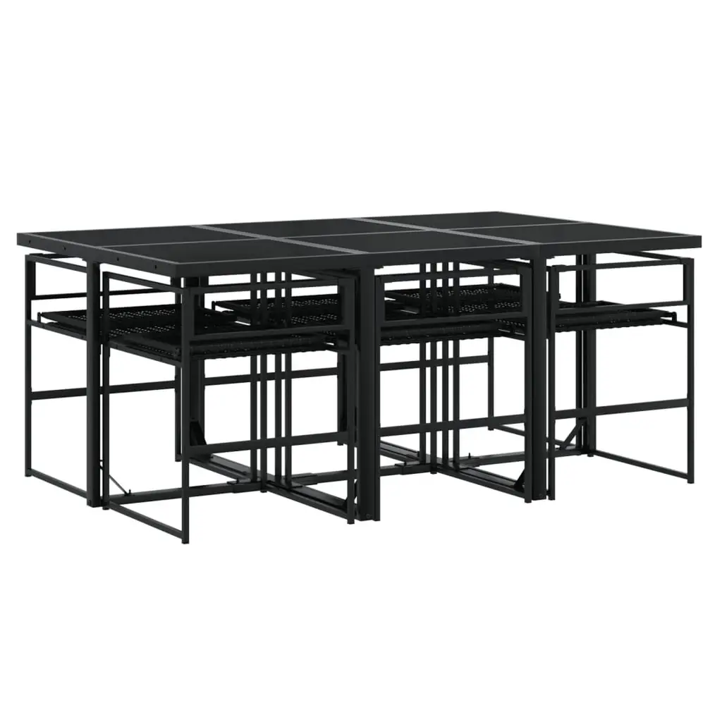 This 7-Piece Garden Dining Set is perfect for outdoor dining and get-togethers, mixing functionality with a modern look. Made for lounging in style in your garden, patio, or balcony, this set not only jazzes up your space but also promises comfort and durability all year round, making it ideal for family gatherings and outdoor meals. Durable Construction: The garden dining set is crafted from high-quality, UV-resistant materials, particularly powder-coated steel and synthetic poly rattan, ensuring longevity against outdoor elements. This durability enables you to enjoy this stylish set for many seasons without worry about fading or deterioration.Adjustable and Foldable: Its foldable design allows for simple, compact storage when not in use, ideal for maximizing space in smaller areas. Whether you’re entertaining guests or enjoying a quiet meal, this set provides convenience at your fingertips.Comfort with Cushions: Each chair comes with weather-resistant cushions that feature removable and washable covers, ensuring both comfort and easy maintenance. The inclusion of cushions elevates your seating experience, allowing you to relax for hours while dining outdoors.Stylish Minimalistic Design: Sporting a contemporary minimalistic style, this set is constructed to blend seamlessly with various outdoor themes, enhancing the ambiance of your garden, balcony, or patio area. The sleek lines and elegant materials provide a sophisticated yet casual atmosphere for dining.Complete Outdoor Dining Experience: This all-inclusive set features a dining table and six comfortable chairs, accommodating a maximum weight of 242.5 lbs per seat, ensuring everyone can enjoy a meal together comfortably. Perfect for lunch, dinner, or casual gatherings, it’s designed with entertaining in mind.