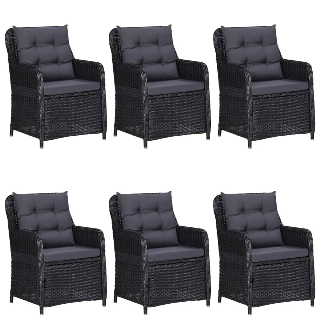 This 7-piece black garden dining set gives you a stylish and practical spot for outdoor entertaining, perfect for family dinners or casual get-togethers. Made from hardy materials like synthetic poly rattan and powder-coated steel, it's a blend of modern style and comfort, making it a standout in any garden or patio. The set comes with a rectangular table and six comfy chairs, giving you loads of room for dining and chatting.Weather-resistant materials mean it lasts, so you can enjoy your outdoor furniture no matter the season.Every seat has thick cushions covered in tough polyester, so you'll be comfy whether you're dining or just chilling.The sleek black finish and simple lines give it a modern look, making it great for all sorts of outdoor spaces.Putting it together is a cinch, just grab a few basic tools, and you'll have your dining area set up in no time.