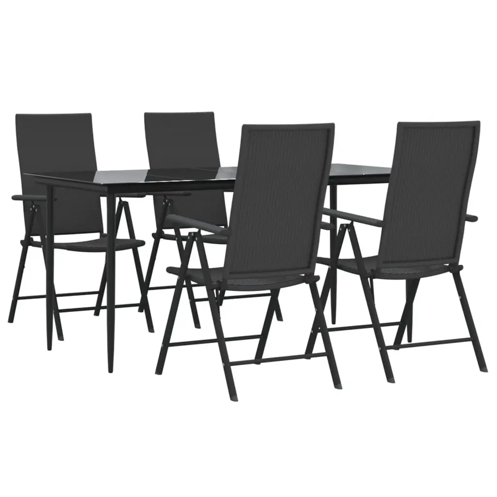 Vidaxl Garden Dining Set Black Pe Rattan 5-Piece Set Foldable