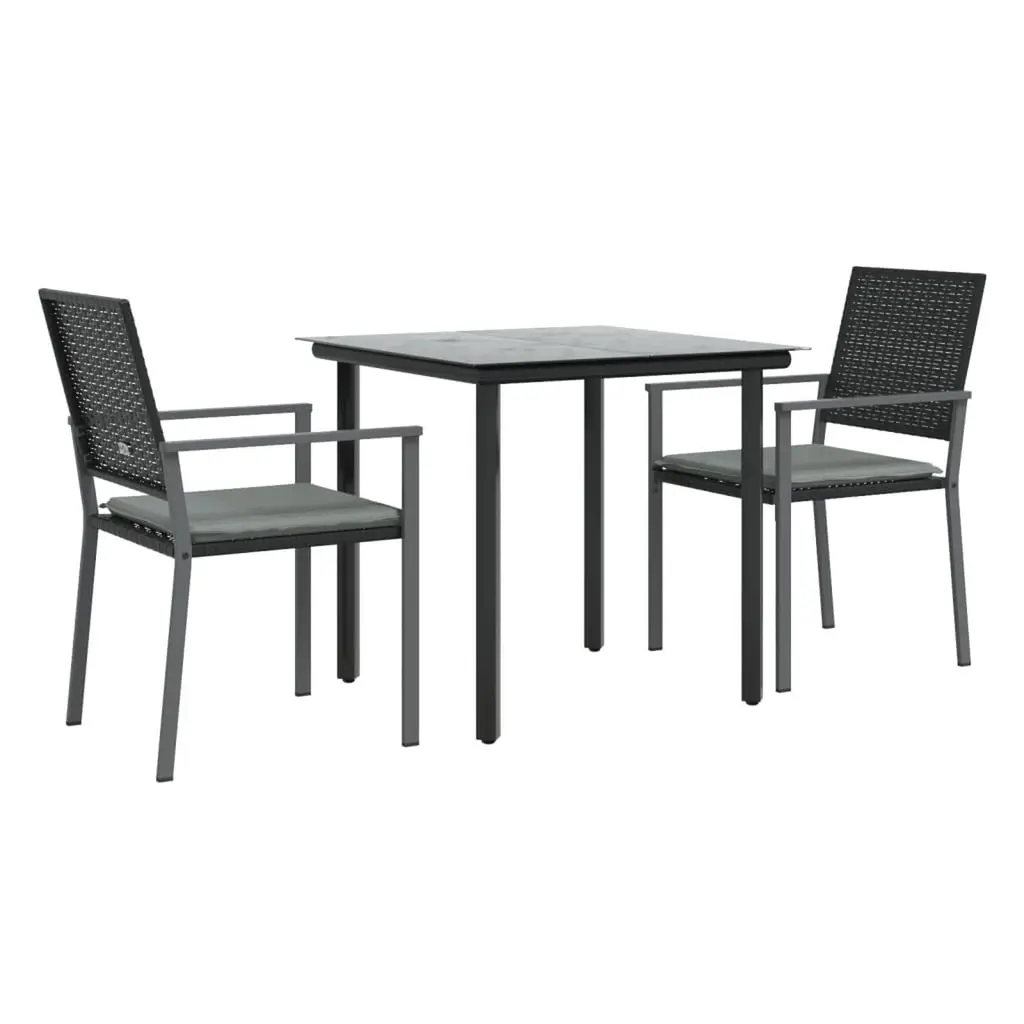 This 3-piece garden dining set mixes modern style with practical function, perfect for any outdoor hangout. Made from tough, weather-resistant materials like PE rattan and a sturdy steel frame, it provides a sleek yet comfy vibe, making it a great fit for gardens, patios, or balconies. Robust Construction: Made from steel and PE rattan, this set is solid even in rough weather. The powder-coated finish helps prevent rust, ensuring it lasts against the outdoors.Comfortable Seating: Each chair comes with soft, removable cushions for convenience and comfort. The zippers make it easy to take them off for cleaning, keeping your outdoor area fresh and welcoming.Elegant Design: The set shows off a modern design with sleek lines and smooth textures, making it ideal for contemporary outdoor settings while providing a top-notch dining experience.Spacious Table: The generous 31.5 in x 31.5 in tabletop is perfect for sharing meals or enjoying outdoor evenings, whether hosting guests or having a family dinner.Easy Maintenance: Made from tough materials, this dining set is easy to care for. Just wipe spills with a damp cloth, and cover it during harsh weather to maintain its appearance.