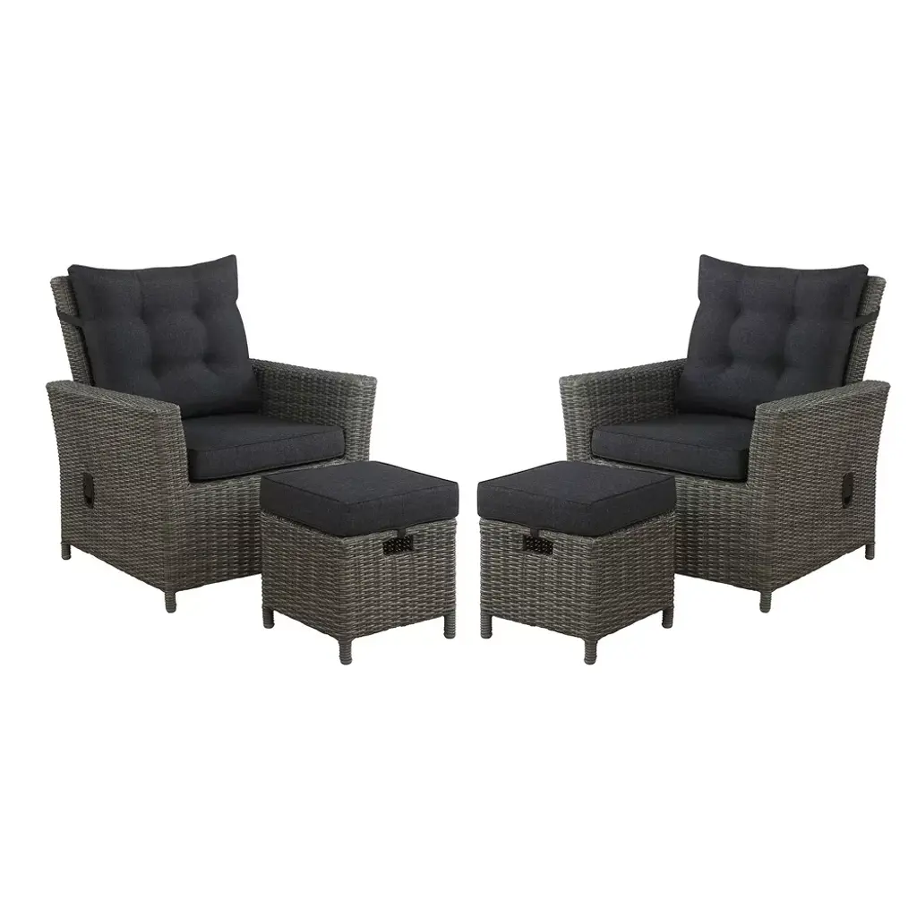 This 4-Piece Garden Dining Set is a classy mix of style and practicality, just right for any outdoor occasion. With a gorgeous table and two stylish chairs, each piece shows off a beautiful black poly rattan weave that draws the eye, while the solid acacia wood top adds a touch of warmth to your patio or garden. Adjustable Armrests: The adjustable armrests let you tweak your seating for maximum comfort. That means you can relax for hours without any discomfort, perfect for long outdoor meals or garden parties.Durable Materials: Made from weatherproof materials, this dining set is designed for outdoor use. The tough steel frames have a sturdy powder coat to handle various weather conditions, ensuring stability and durability.Stylish Appearance: The sleek, modern design of this set goes with any outdoor decor. The lovely woven texture of the poly rattan adds a touch of elegance while keeping things light, matching your garden or patio perfectly.Comfortable Cushions: Soft, removable seat cushions come with the set, boosting comfort for long dinners or gatherings. Plus, the zip closure makes for easy cleaning, so your set stays looking fresh.Versatile Use: Whether it’s a casual brunch or a fancy evening meal, this dining set fits all occasions. Its design is both functional and stylish, perfect for family dinners or social get-togethers.