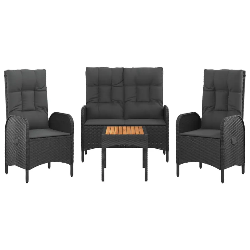 Vidaxl Garden Dining Set Black Poly Rattan 4-Piece Set