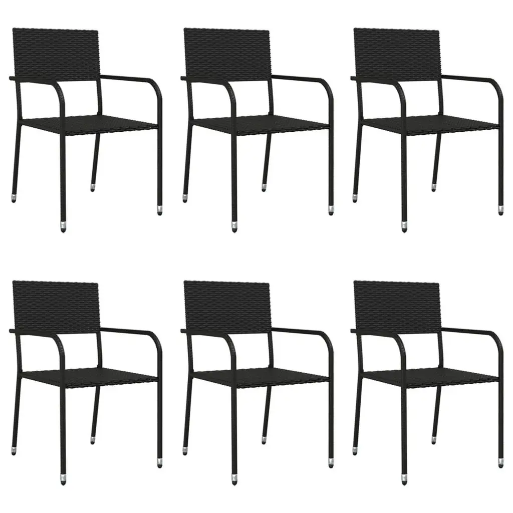 This 7-Piece Garden Dining Set in Black is all about outdoor style and practicality, making your meals on the balcony or patio feel special. With its modern look, this set not only gives you plenty of seating but also jazzes up your outdoor area with its clean lines and smooth materials, perfect for hanging out with family and friends. Durability: Made from weather-resistant PE rattan, this set is built to last through all kinds of outdoor weather, keeping it looking good. Its tough materials mean it won't wear out quickly, making it a great choice for outdoor furniture.Stability: The solid steel frame gives the support and stability you need, keeping the table and chairs steady even during lively outdoor meals with up to 7 people at a time.Ease of Maintenance: With a smooth tempered glass tabletop, spills are a breeze to wipe away, and keeping your garden dining set looking fresh is super easy. The simple design and handy features mean you can enjoy your outdoor spot without any fuss or hassle.Versatile Seating: With space for up to 7 people, this dining set is perfect for garden parties, casual meals, and classy dinners outside. It encourages socializing and sets the right vibe for outdoor entertaining.Adjustable Features: The stackable design makes for easy storage, letting you save space when it’s not in use, which is handy for frequent hosts and a smart buy for any home.