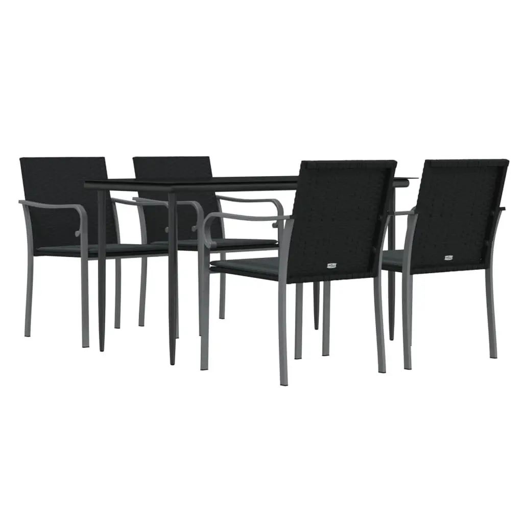 Vidaxl Garden Dining Set Black Poly Rattan, Steel, Tempered Glass, Polyester