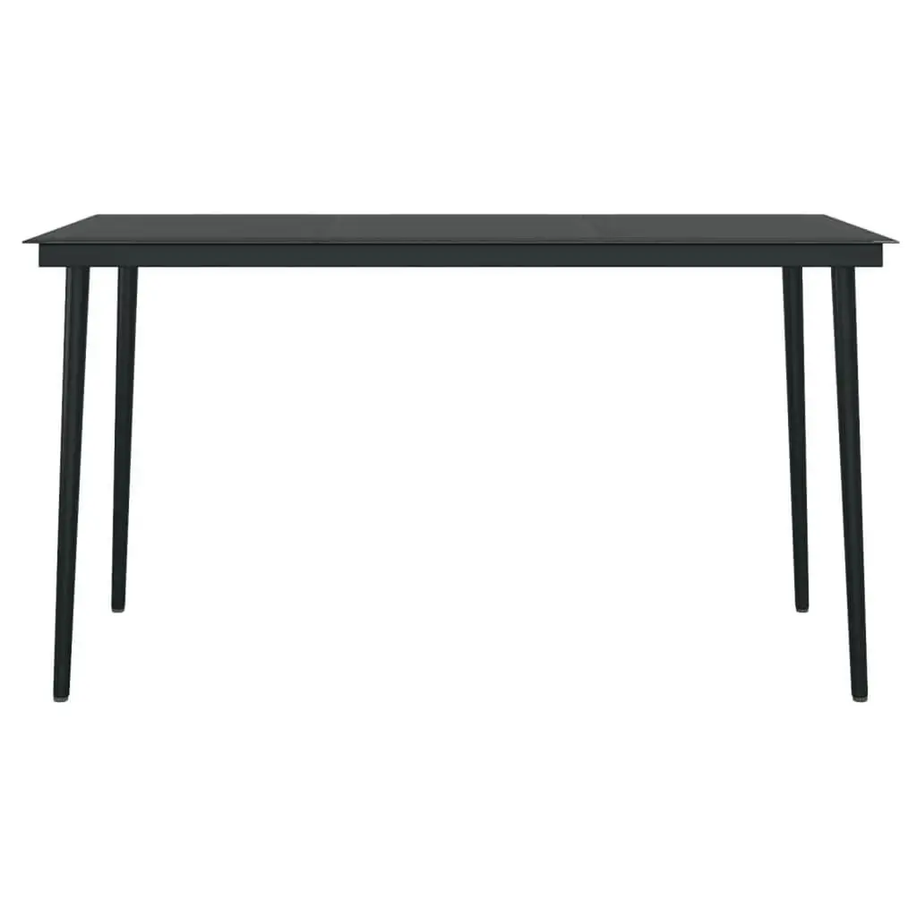 Vidaxl Garden Dining Set Black Powder-Coated Steel, Glass, Plastic