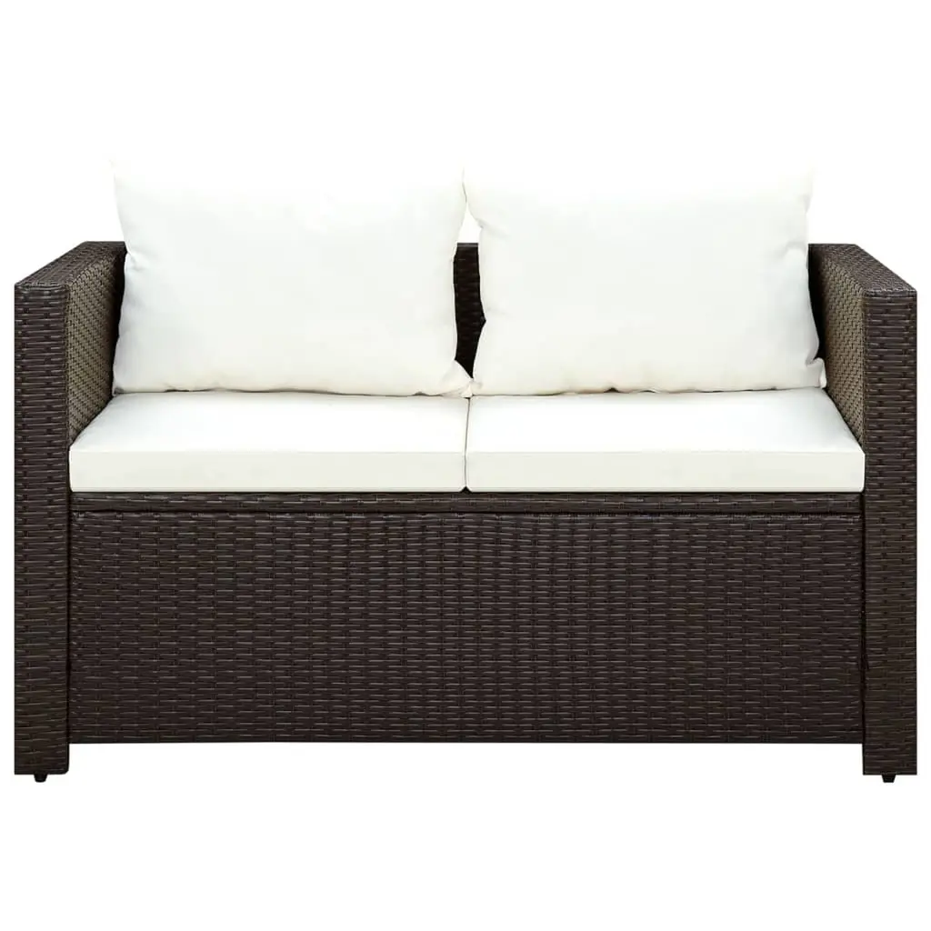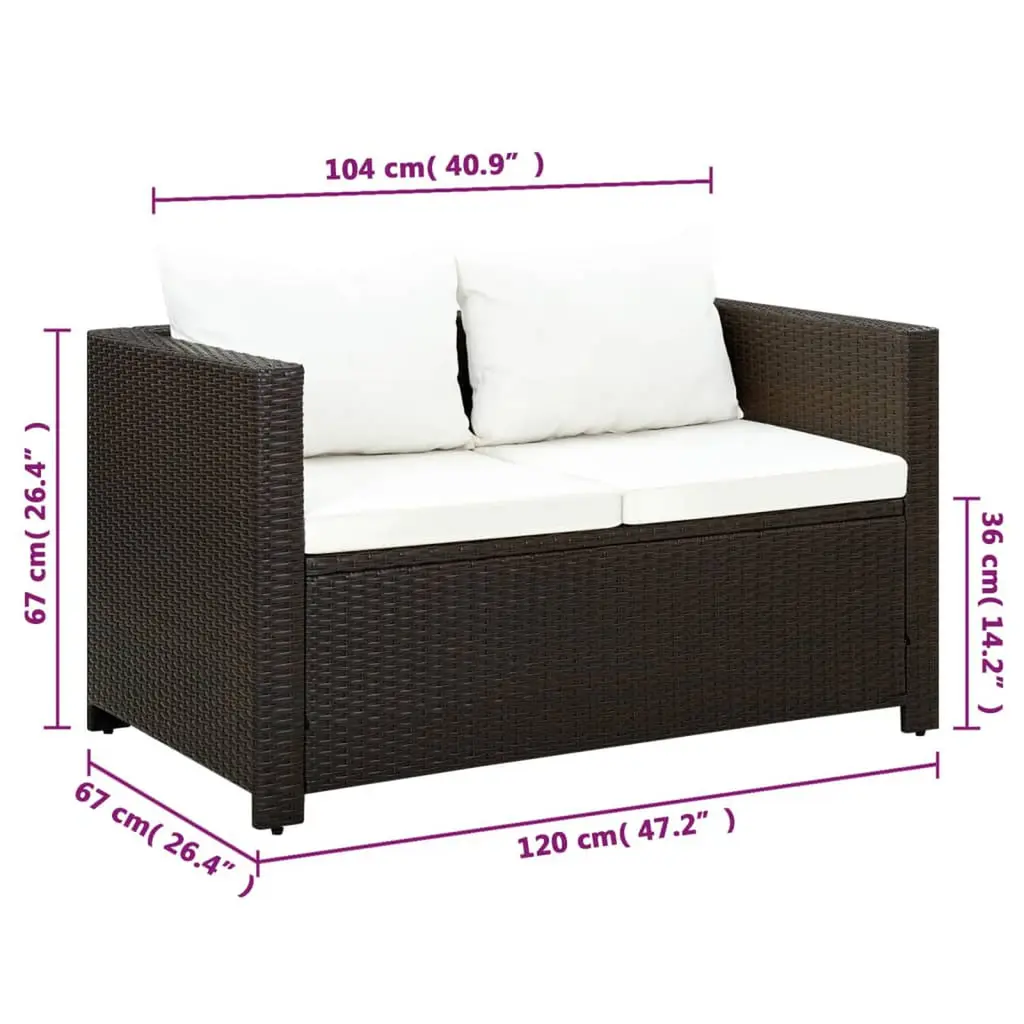 This 3-Piece Outdoor Bistro Set mixes style and function, brightening up any garden, patio, or balcony. Made with synthetic poly rattan, it boasts a trendy design that fits well in outdoor spaces, offering a stylish and inviting area for relaxing or dining. Versatile Modular Design: This modular option lets you change the seating layout to fit your needs, whether entertaining guests or just having a chill night in. You can shift the set around for more guests or snug family time.Water-Resistant Finish: The water-resistant materials ensure spills and moisture won’t ruin the set, making outdoor entertaining a breeze. Keeping the bistro set clean is easy, making it great for regular use.Robust and Sturdy Structure: The powder-coated steel frame provides unbeatable stability and durability for outdoor conditions. This means it'll last for ages, ideal for everyday outdoor fun.Comfortably Cushioned: Each seating area is fitted with soft cushions, ensuring comfort while lounging. The cushions maintain their shape while providing lovely support, perfect for lounging all afternoon.Elegant Aesthetic: The sleek, modern design enhances the outdoor look, making it a stunning addition to your decor. The rich brown color and smooth finish really boost its appeal, making it a stylish choice.