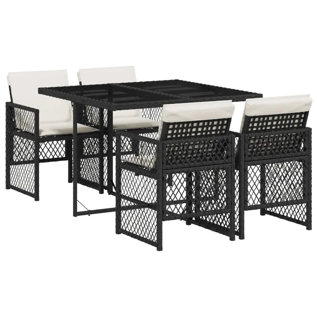 This 5-piece garden dining set is all about style and function, perfect for any patio or outdoor area. Its contemporary design with brown poly rattan and black powder-coated steel frame creates a welcoming vibe for family meals, hangs with friends, or chill evenings in the garden. Stylish and Modern: The contemporary vibe of woven poly rattan paired with a sleek metal frame makes a stylish statement for any outdoor area. It's classy enough to go with various decor styles, making it a flexible choice for your garden or patio. Durable and Weather-Resistant: Built with UV-resistant materials, this garden dining set is made to last, keeping its good looks whether it's sunny or rainy. A waterproof cover will help it last longer and protect your investment. Space-Saving Design: Enjoy the ease of foldable chairs that allow for neat storage when not in use, saving space on your patio or in the garden. This is perfect for smaller areas or when you're entertaining a bigger crowd. Comfortable Seating Experience: Each chair has thick, high-back cushions that provide support and comfort. The removable covers are easy to clean, keeping this dining set fresh and ready for any occasion. Generously Sized: The rectangular garden table comfortably fits four people, making it great for meals or drinks outdoors. It has plenty of room for food and drinks, creating cozy get-togethers.