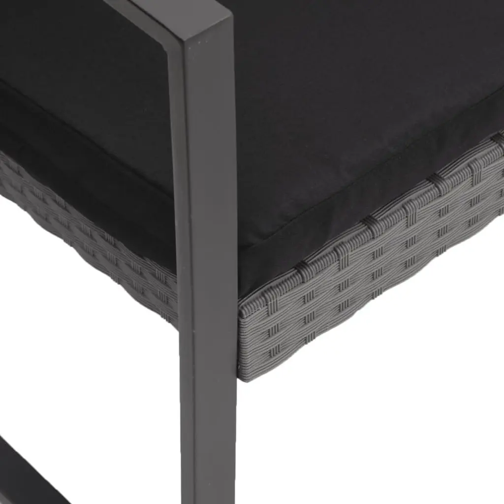 This 5-piece garden dining set is stylish and functional, featuring a rectangular table and comfy seats for outdoor gatherings. Its sleek look fits well on balconies, patios, or in gardens, letting everyone dine or have coffee in a laid-back vibe. Durable Materials: The set features durable powder-coated steel that holds up in the elements, keeping its strength and structure over time.Modular Configuration: Flexibility rules! This dining set can easily be rearranged for different events and situations to suit your needs.Comfy Cushions: Weather-resistant cushions offer maximum comfort, letting you chill for ages while dining or socializing outside.Stylish Design: With a sleek black surface and woven finish, the trendy industrial style enhances any outdoor setting, making it a fab addition to your home.Easy to Care For: Made from UV-resistant and fade-proof materials, the set requires little maintenance and can be easily cleaned with a damp cloth.