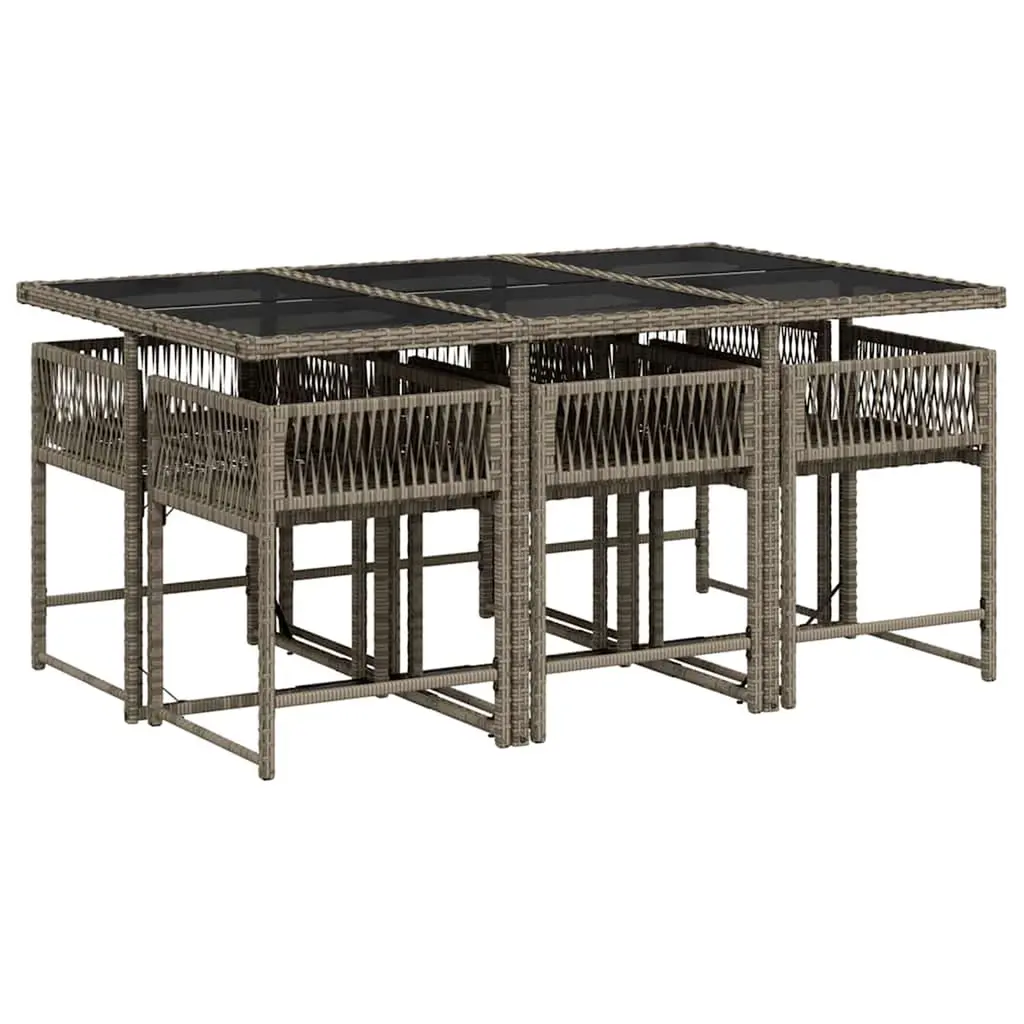 Vidaxl Garden Dining Set Gray Pe Rattan 6-Seater Foldable