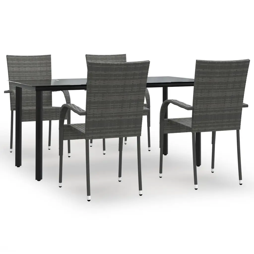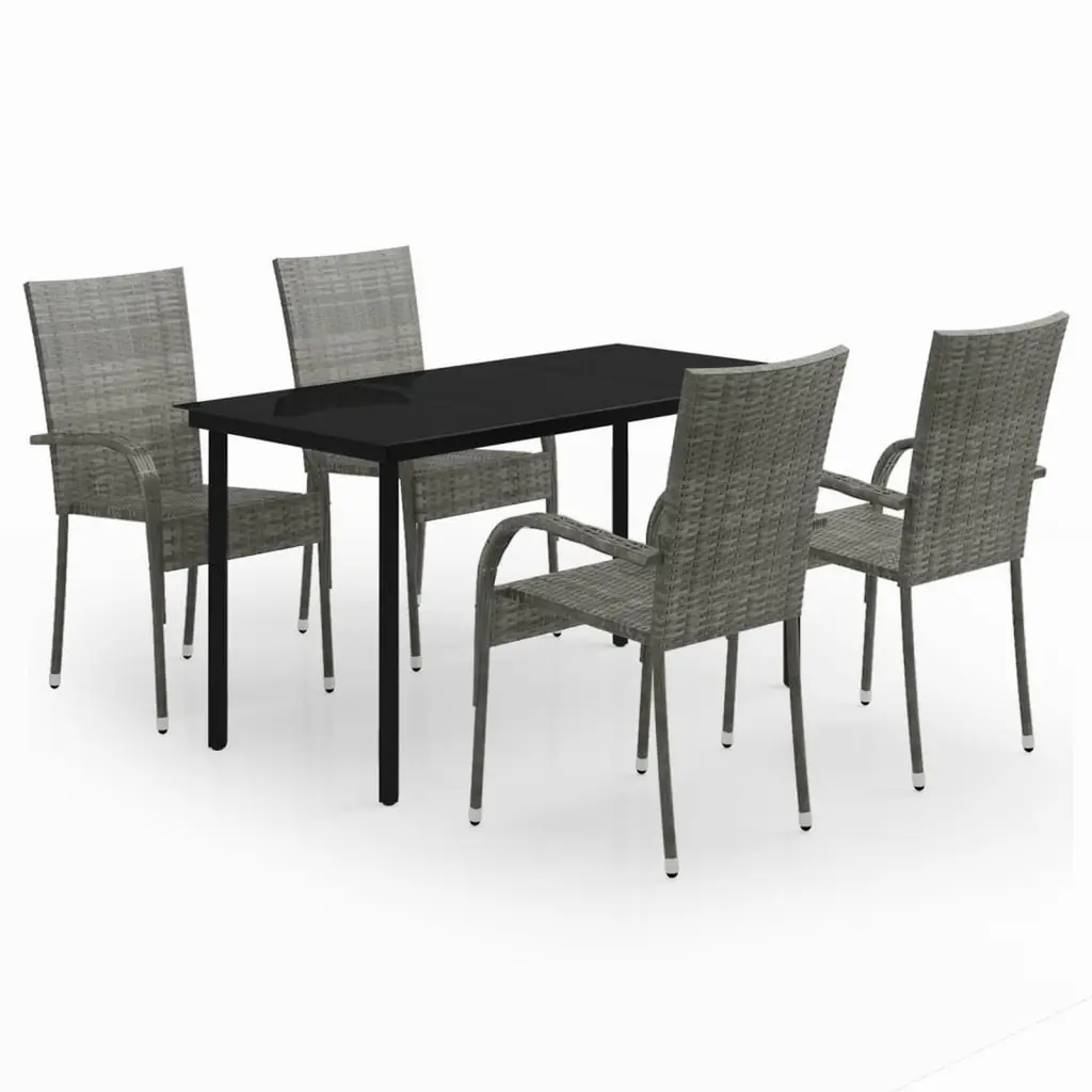 This 9-piece garden dining set is all about style and practicality, with a spacious rectangular dining table and eight comfy chairs. It's perfect for family gatherings or outdoor parties, adding a modern grey and black touch to any balcony or garden. Durable Build: Designed with a strong powder-coated steel frame, this dining set will last for years, so you can enjoy outdoor dining for ages.Weather-Resistant Materials: The PE rattan is excellent at handling the weather, keeping your furniture looking good despite whatever nature throws at it.Modern Look: With its sleek design, this dining set really lifts the outdoor decor, creating a chic vibe for dining and chilling.Comfortable Seating: Each chair is made with comfort in mind, providing great support for long meals and gatherings.Easy to Clean: The glass tabletop and rattan surface are low fuss, just wipe them down with warm water for a quick clean.