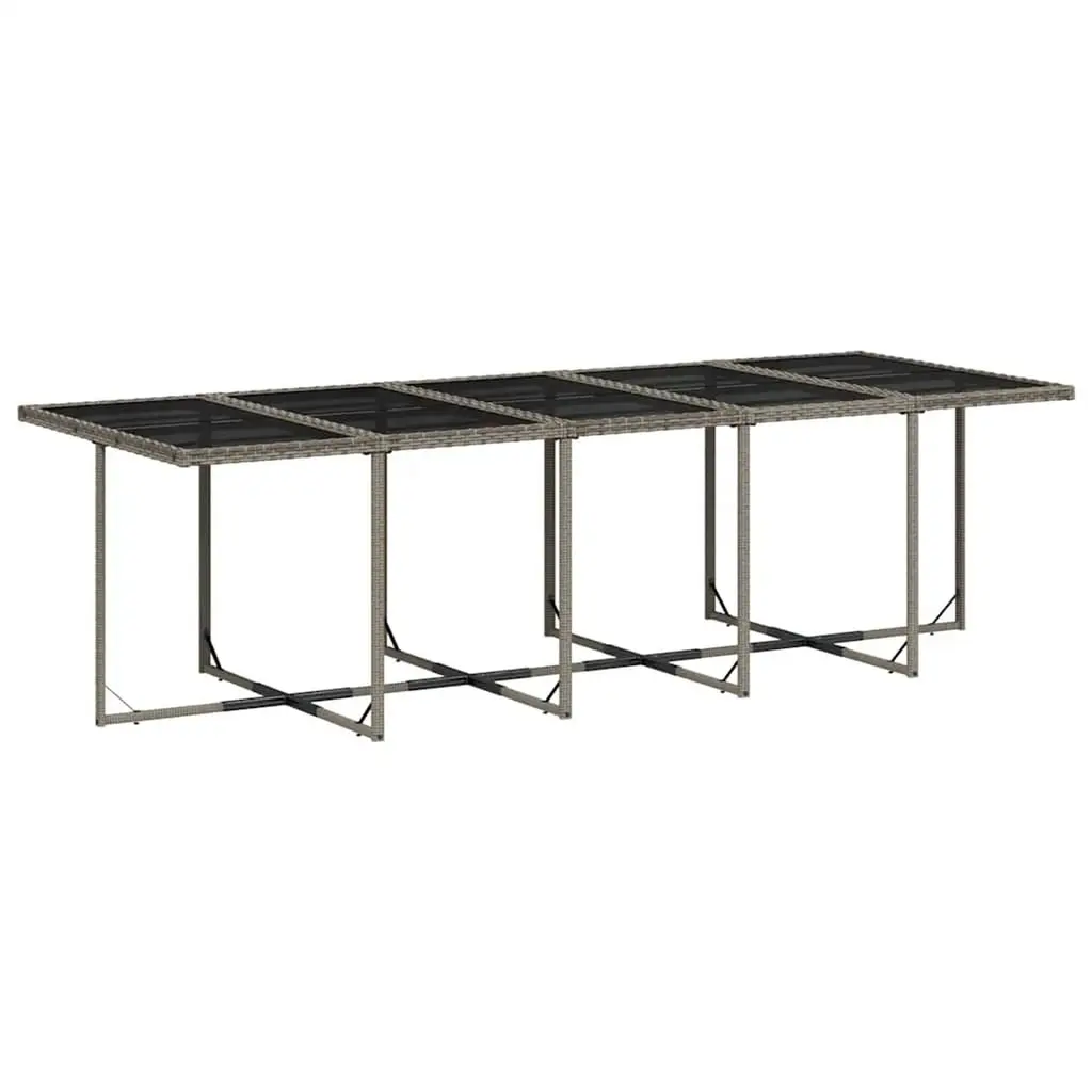 This compact and stylish garden dining set is spot on for outdoor get-togethers, featuring a modern design that fits nicely with your patio or balcony. It seats ten, bringing both function and style, making it perfect for family meals or friendly hangs outside. Space-Saving Solution: The foldable feature of this dining set means easy storage without taking up too much space, making it ideal for small patios or gardens.Capacious Seating: Comfortably sits ten people, letting you host large outdoor dinners with family and friends.Durable Construction: Made with powder-coated steel and UV-resistant materials, this set is built to endure the elements while providing dependable support.Sleek Finish: The tempered glass tabletop adds a touch of elegance while offering a surface that's easy to clean after meals.Removable Cushions: The cushions have washable covers for easy upkeep and a comfy seating experience, making your meal times more relaxing.