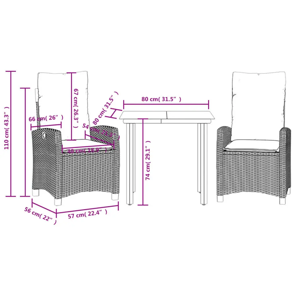 Vidaxl Garden Dining Set Grey Pe Rattan Medium Adjustable Armrests